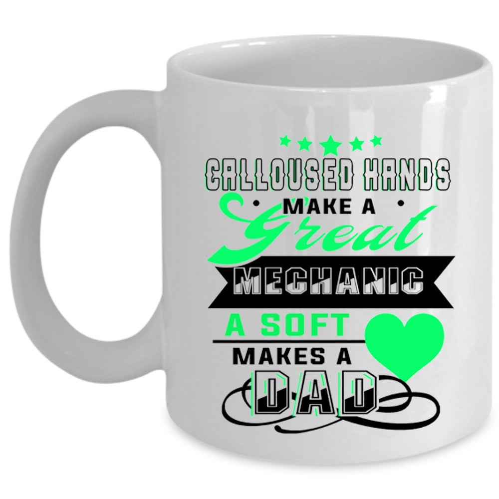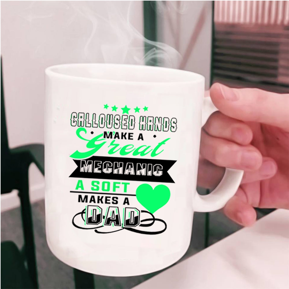 A Soft Makes A Dad Coffee Mug, Calloused Hands Make A Great Mechanic Cup
