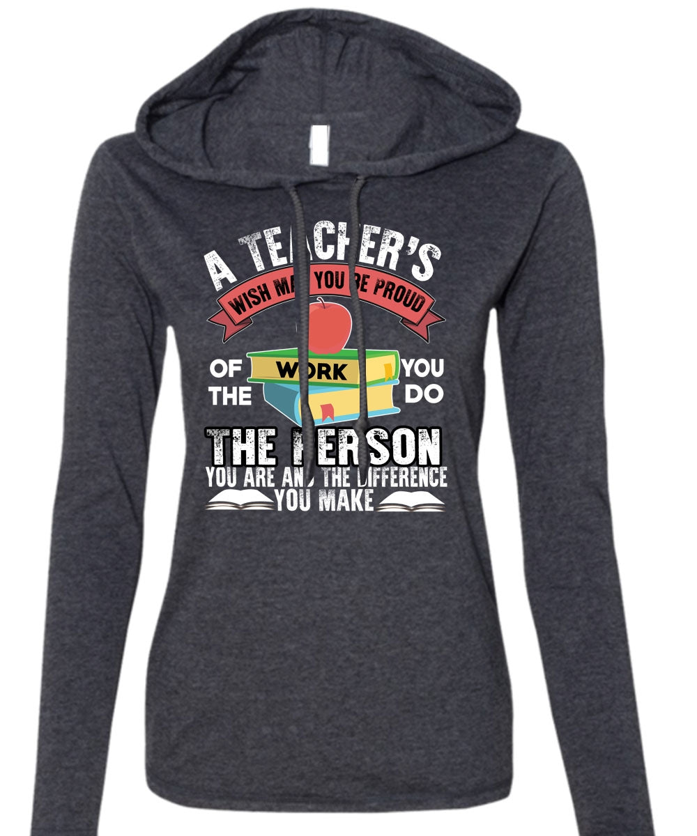 A Teacher's Wish May You Be Proud Of The Work T Shirt, Being A Teacher T Shirt (Anvil Ladies Ringspun Hooded)