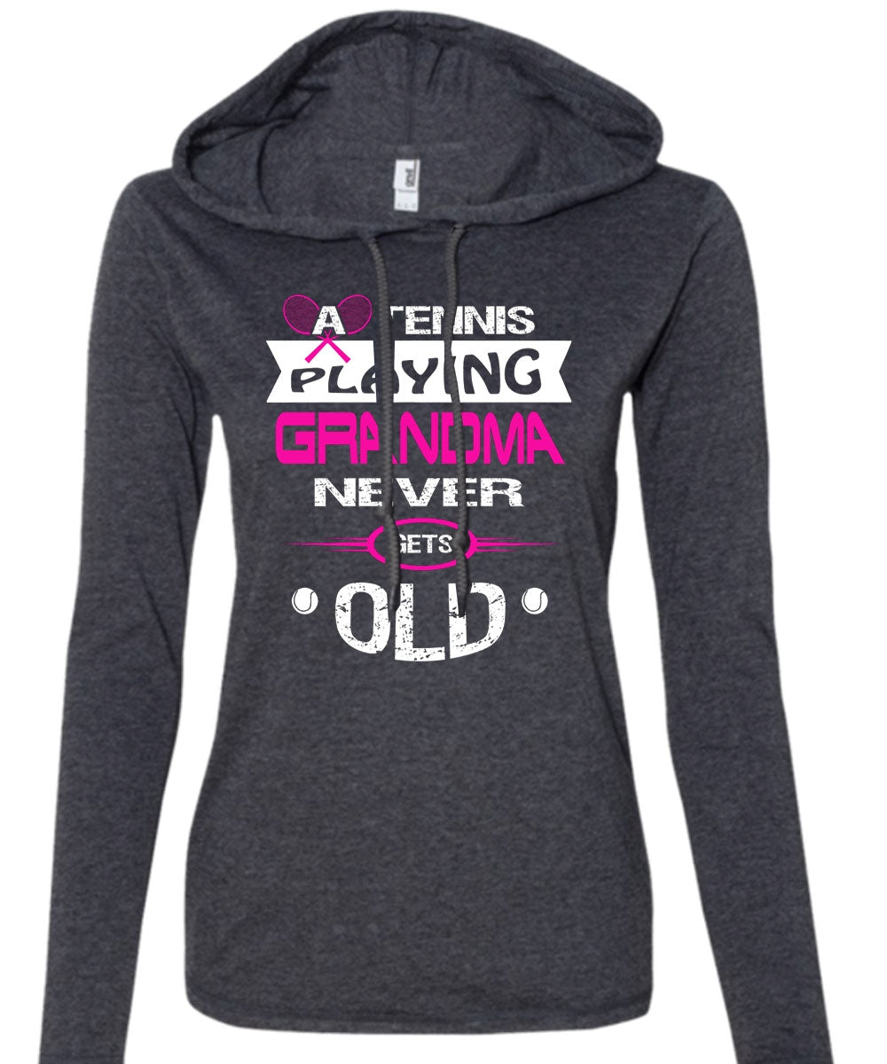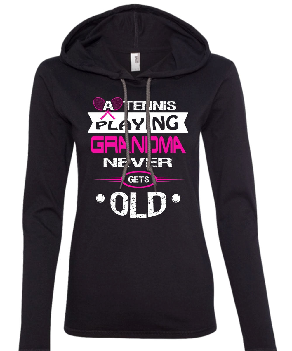 A Tennis Playing Grandma Never Gets Old T Shirt, Life T Shirt (Anvil Ladies Ringspun Hooded)