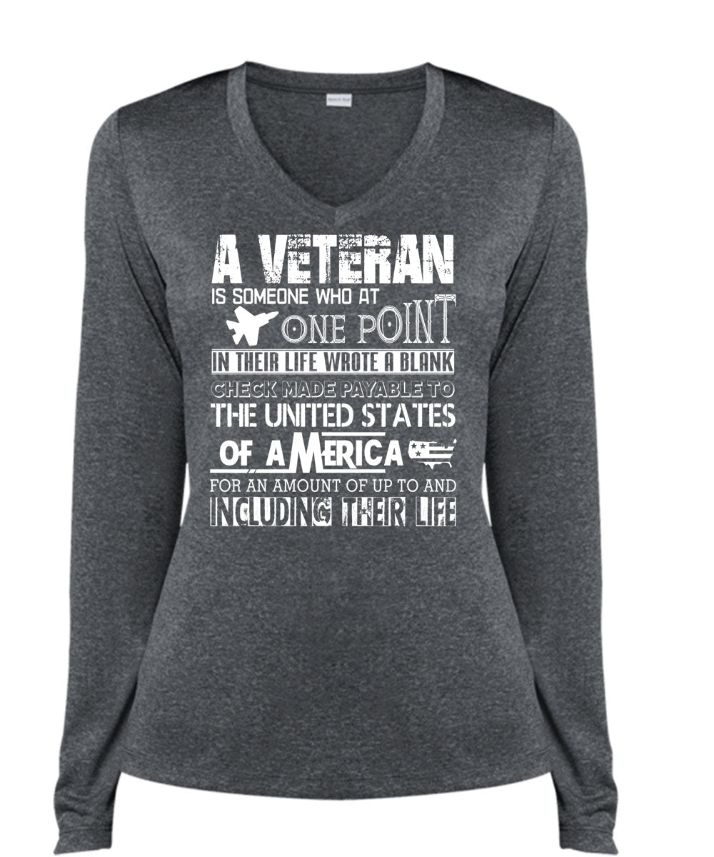 A Veteran Is Someone Who At One Point In Their Life Wrote A Blank T Shirt, Life T Shirt (Ladies LS Heather V-Neck)