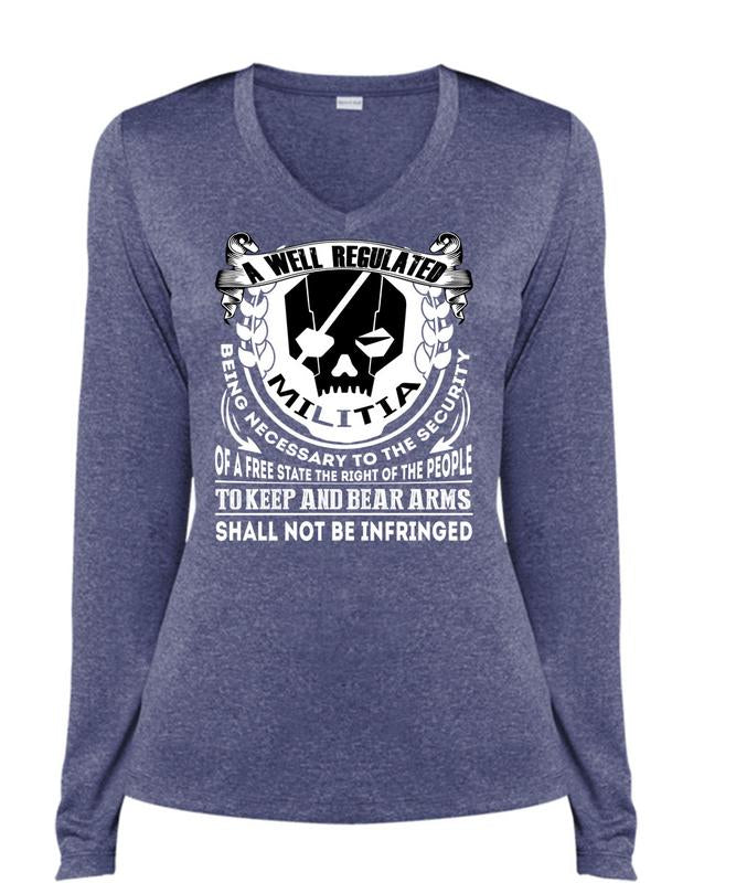 A Well Regulated Militia T Shirt, To Keep And Bear Arms T Shirt, Cool Shirt (Ladies LS Heather V-Neck)