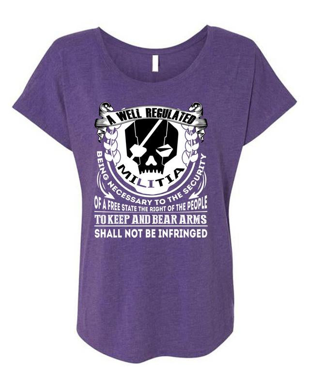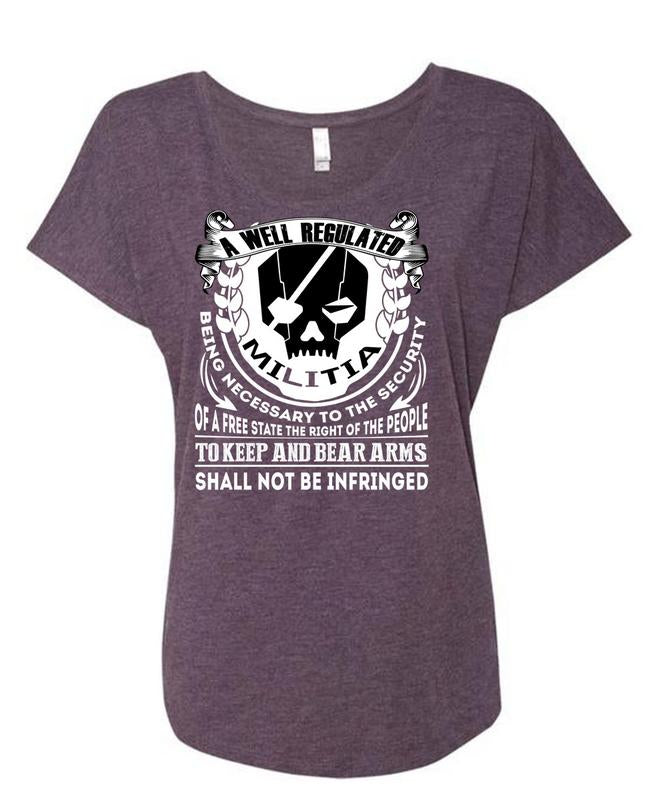 A Well Regulated Militia T Shirt, To Keep And Bear Arms T Shirt, Cool Shirt (Ladies' Triblend Dolman Sleeve)