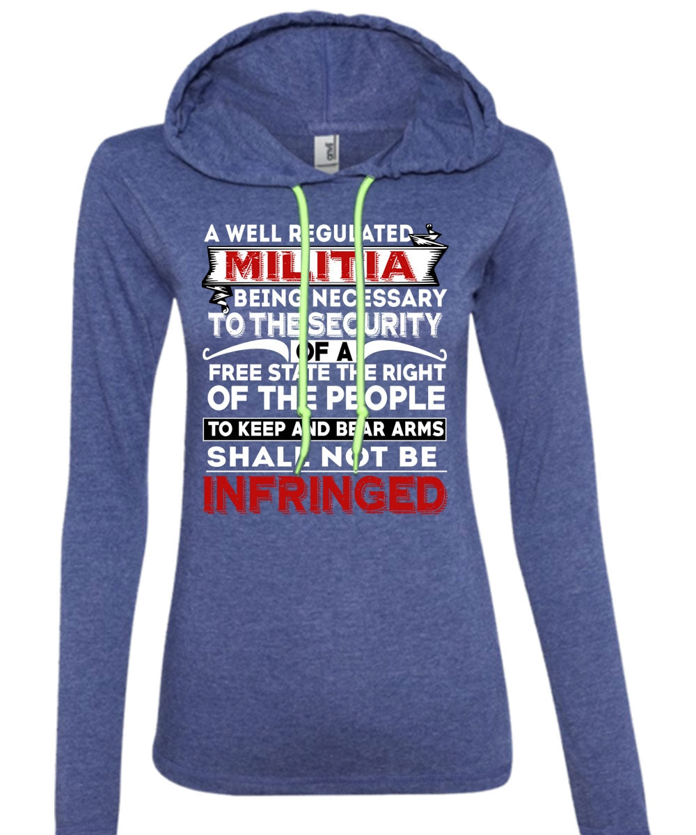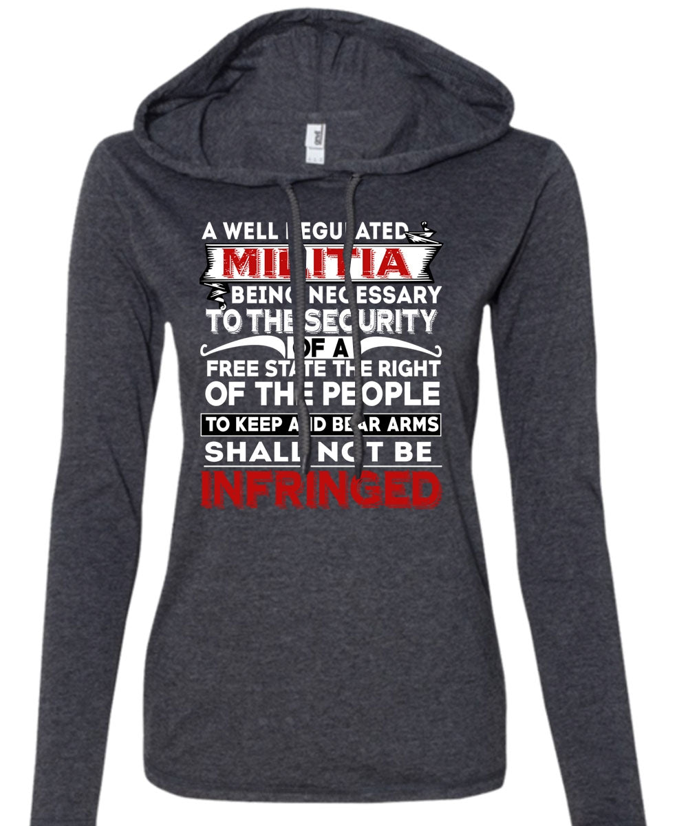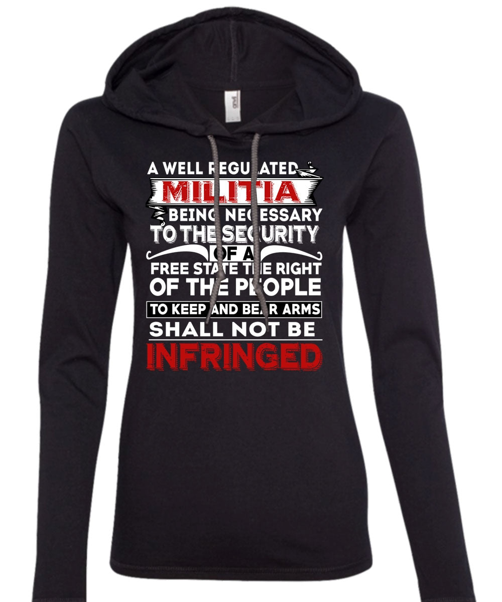 A Well Regulated Militia T Shirt, To The Security Of A Free T Shirt (Anvil Ladies Ringspun Hooded)