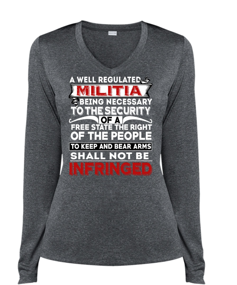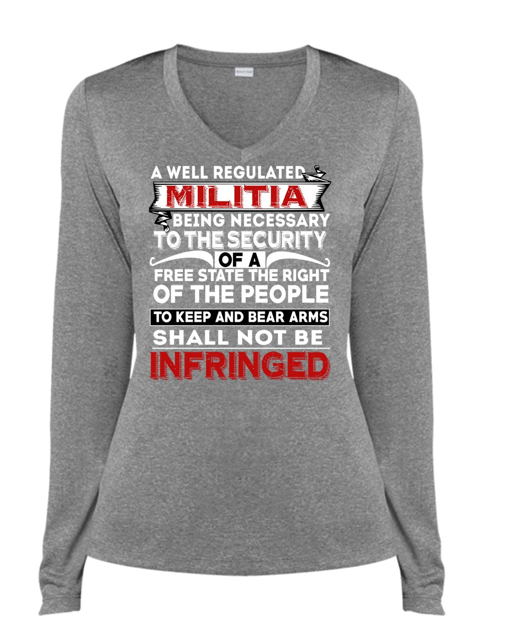 A Well Regulated Militia T Shirt, To The Security Of A Free T Shirt, Cool Shirt (Ladies LS Heather V-Neck)