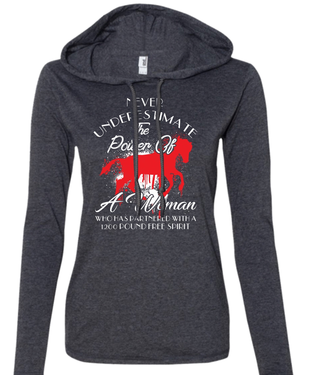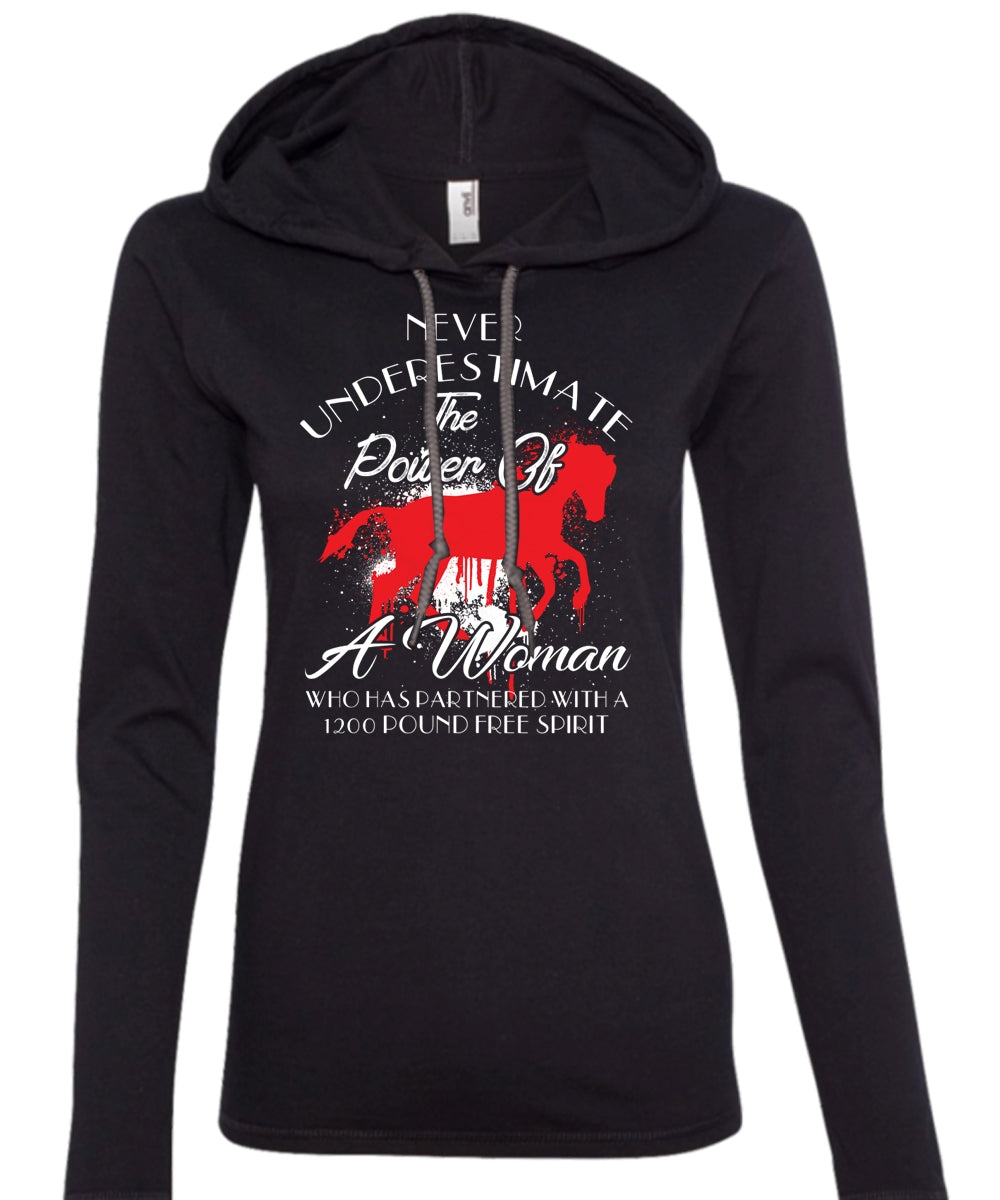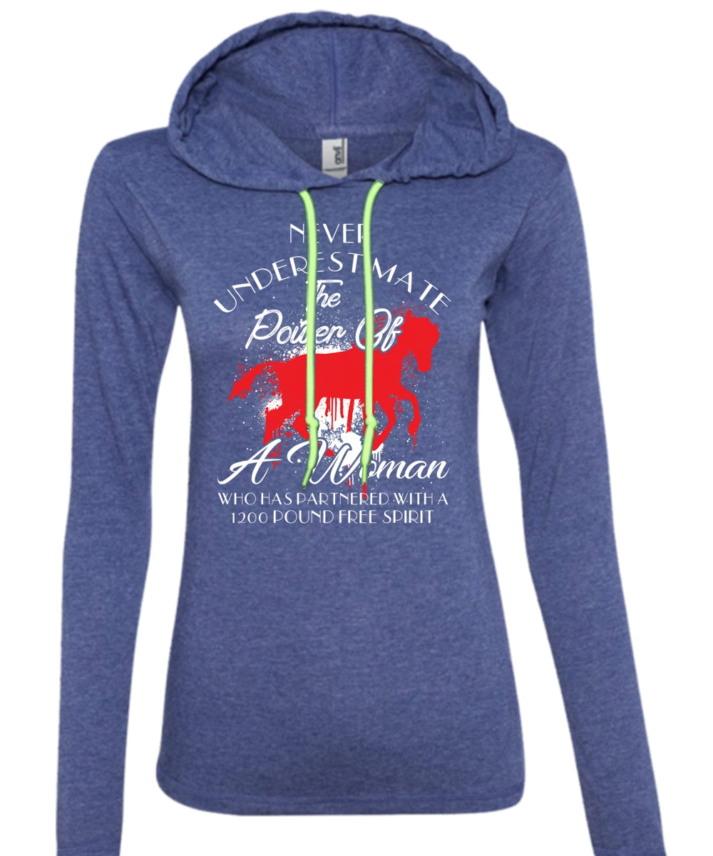 A Woman Who Has Partnered With A 1200 Pound Free Spirit T Shirt, Sport T Shirt (Anvil Ladies Ringspun Hooded)