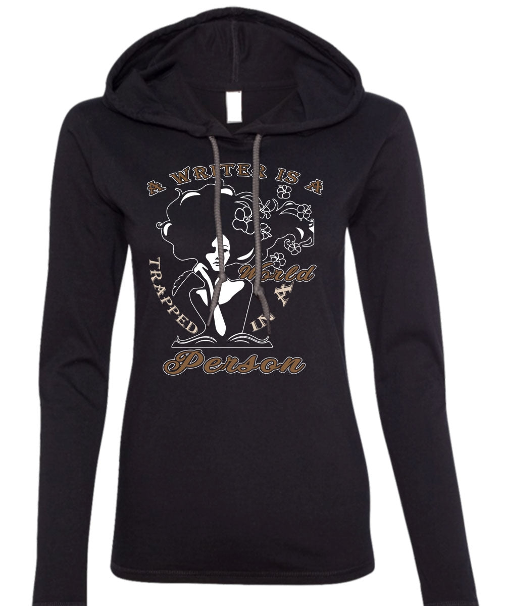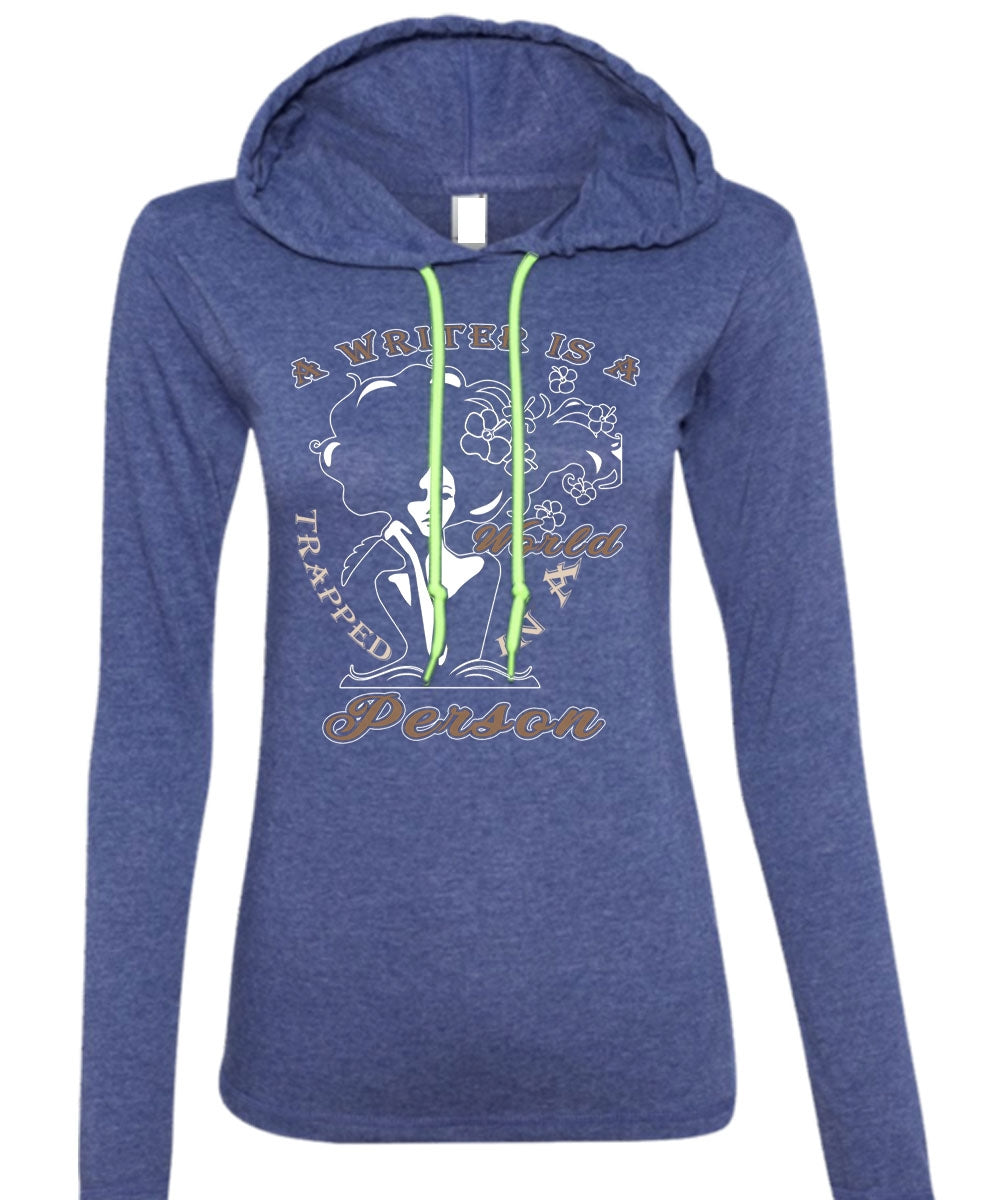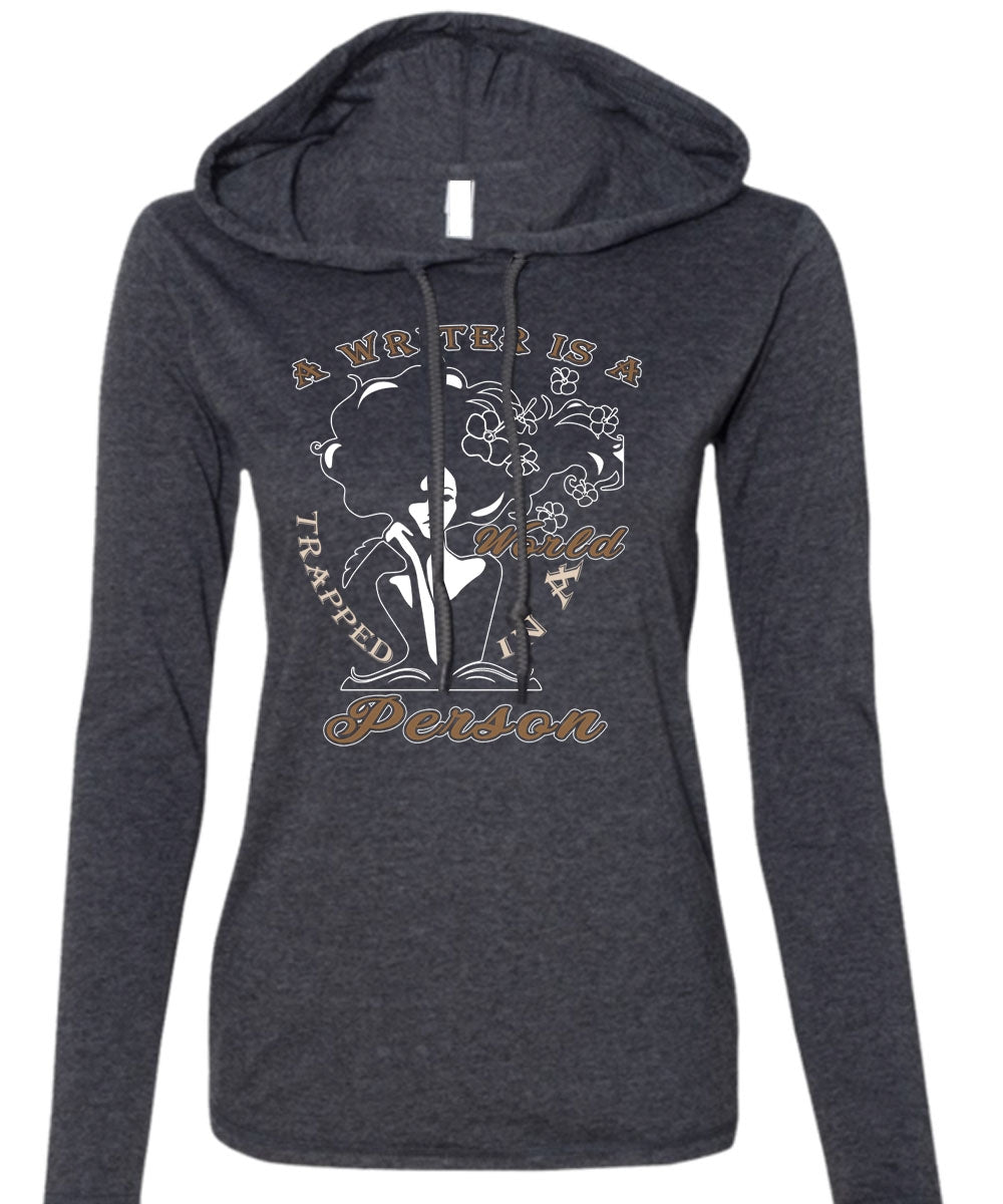 A Writer Is A Trapped In A World Person T Shirt, Being A Writer T Shirt (Anvil Ladies Ringspun Hooded)