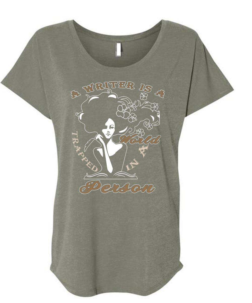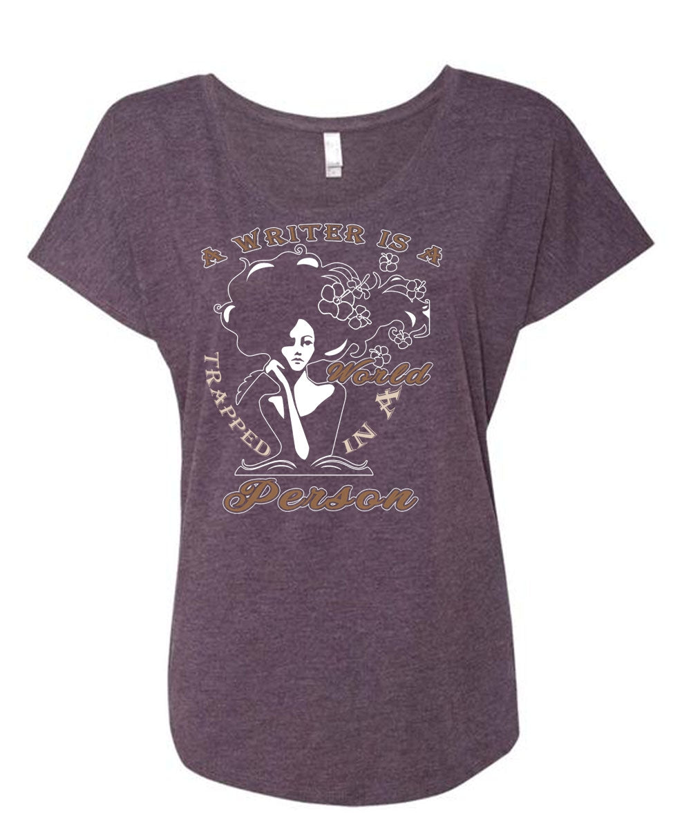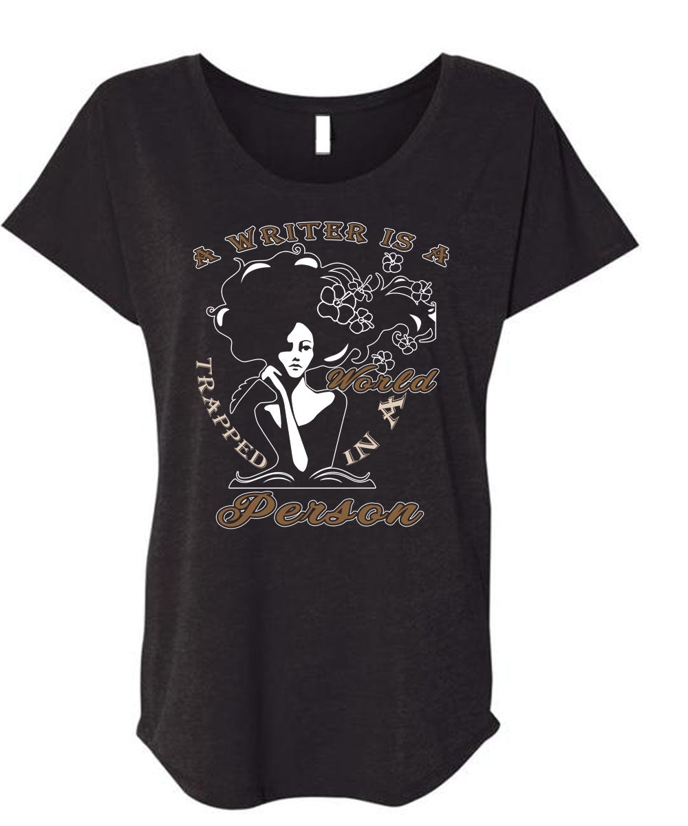 A Writer Is A Trapped In A World Person T Shirt, Being A Writer T Shirt, Cool Shirt (Ladies' Triblend Dolman Sleeve)