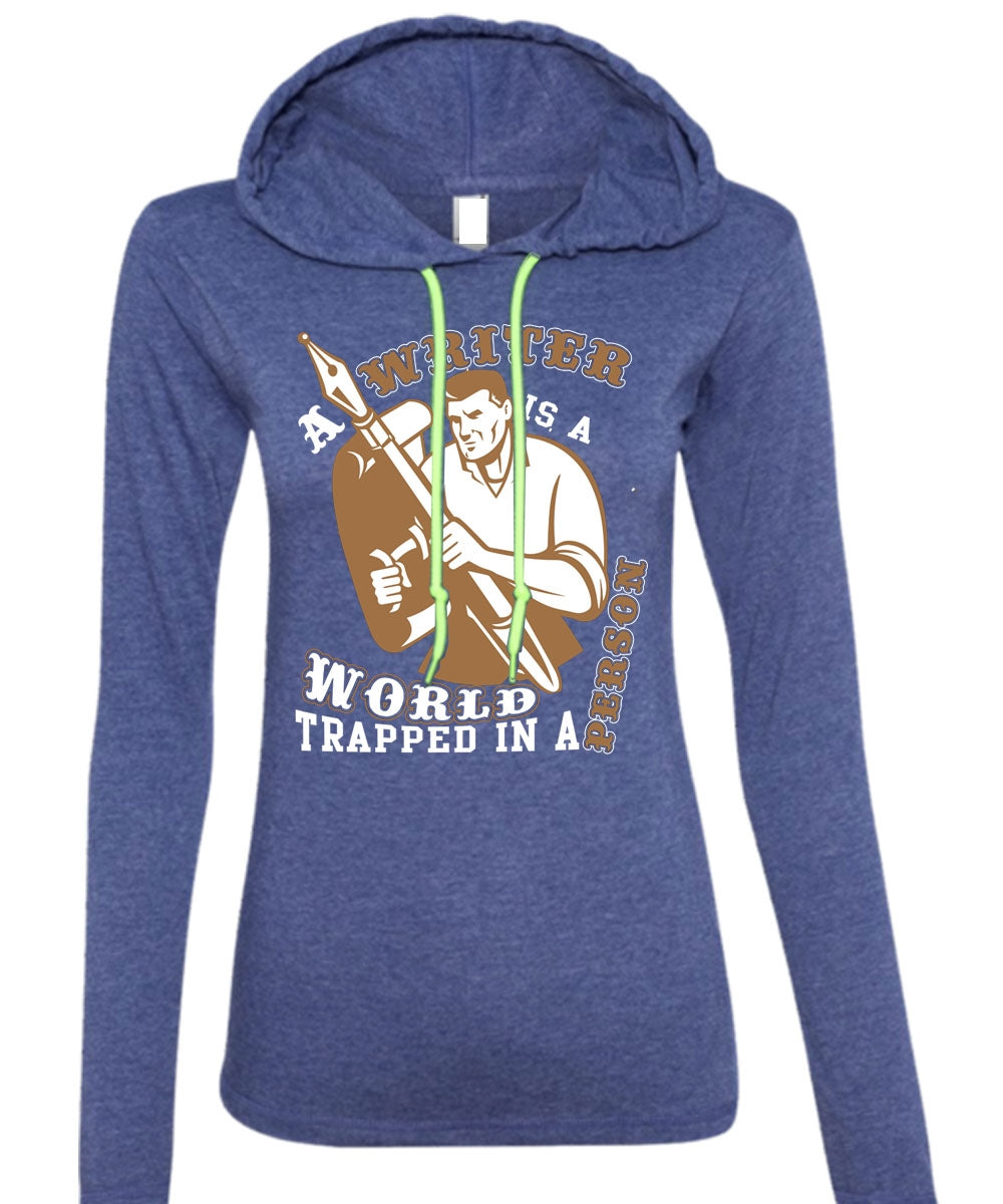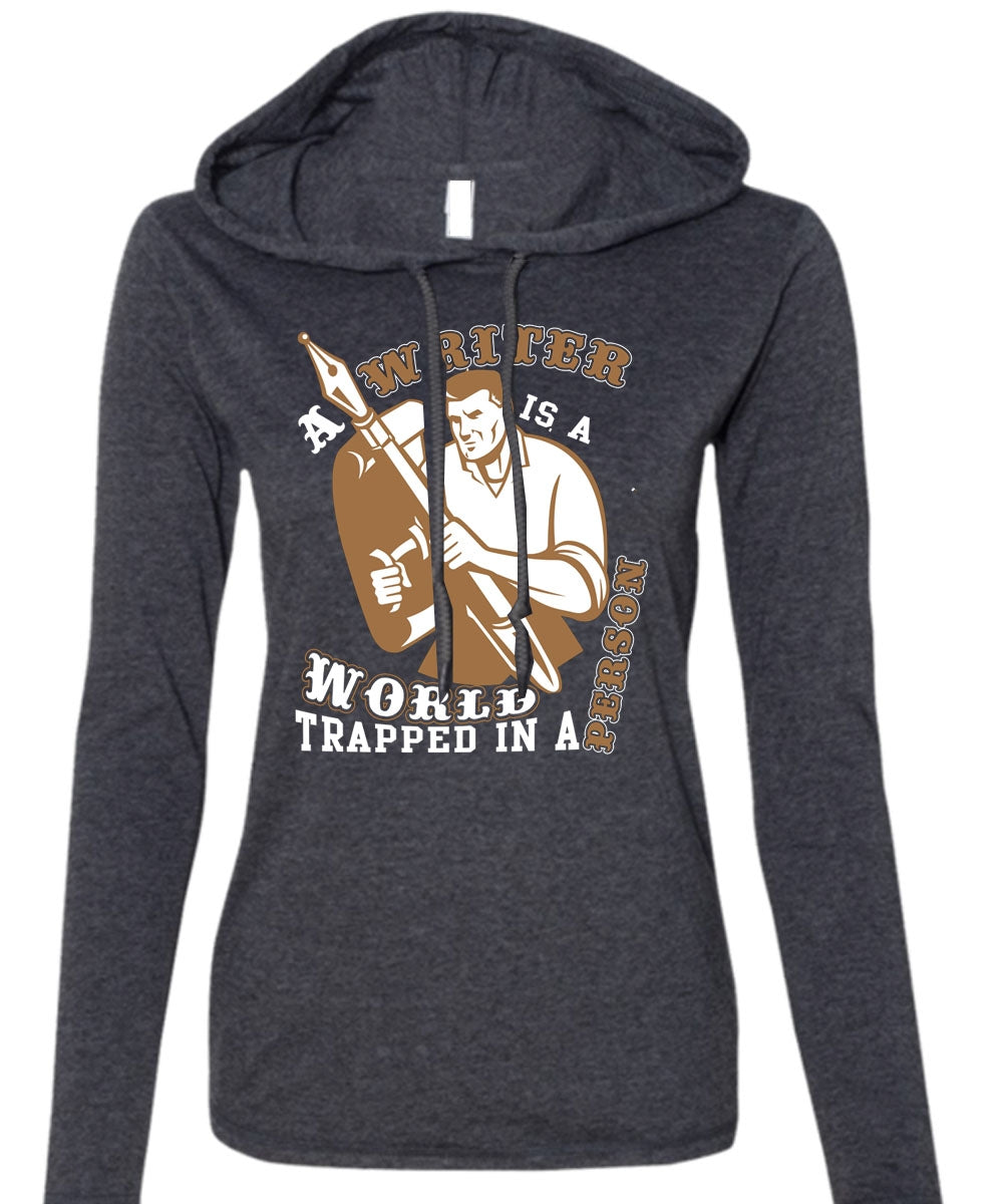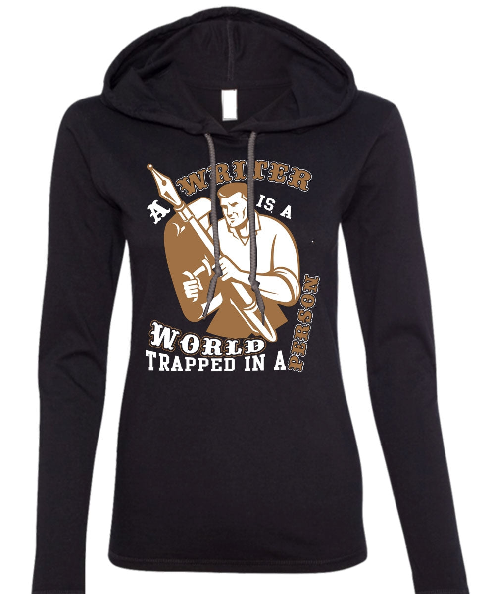 A Writer Is A World Trapped In A Person T Shirt, Being A Writer T Shirt (Anvil Ladies Ringspun Hooded)