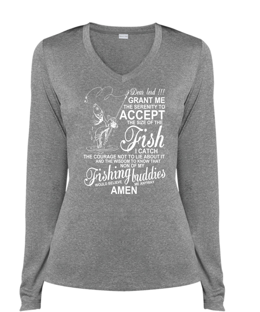 Accept The Size Of The Fish T Shirt, Being A Fisher T Shirt, Cool Shirt (Ladies LS Heather V-Neck)