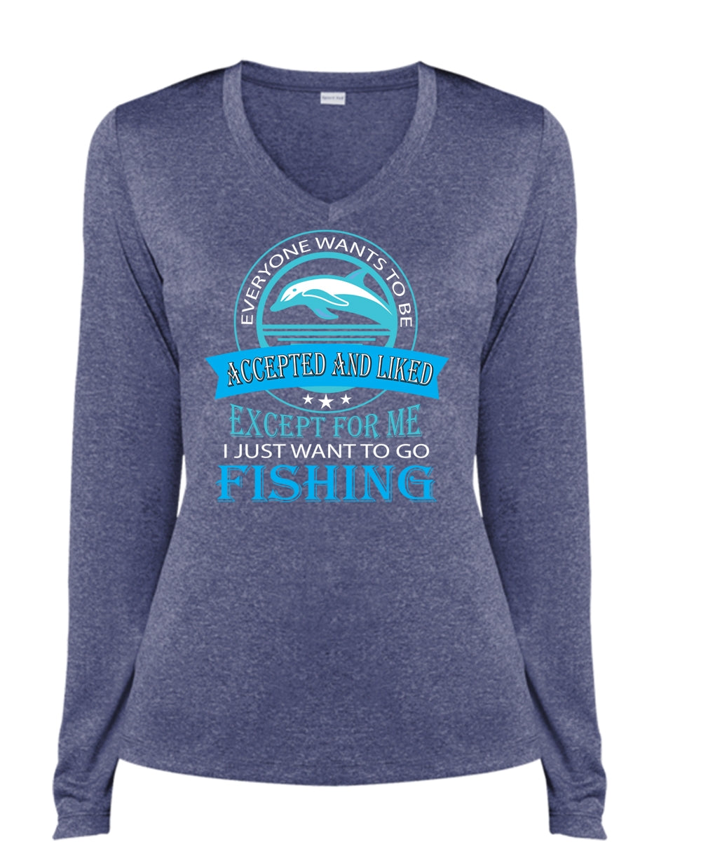 Accepted And Liked Except For Me T Shirt, Fish Season T Shirt (Ladies LS Heather V-Neck)