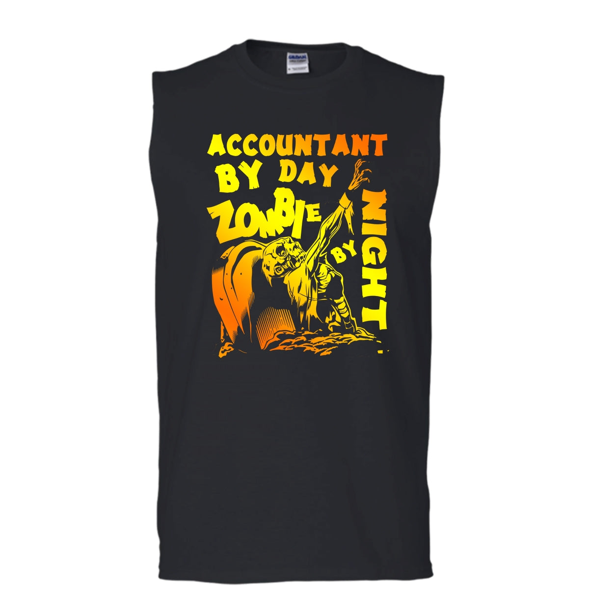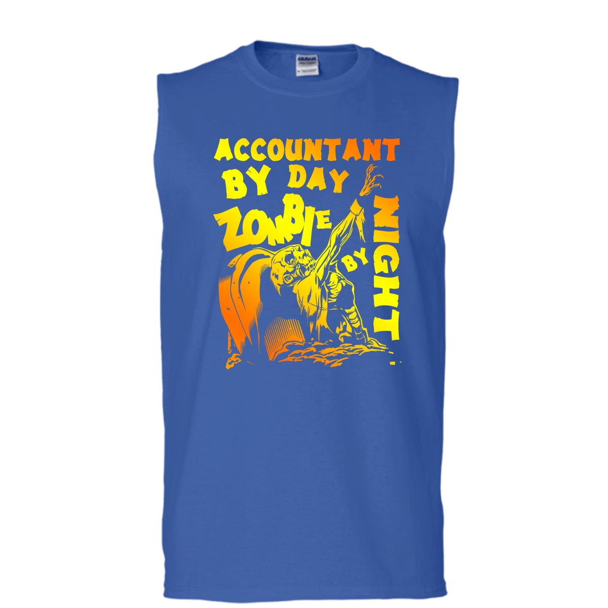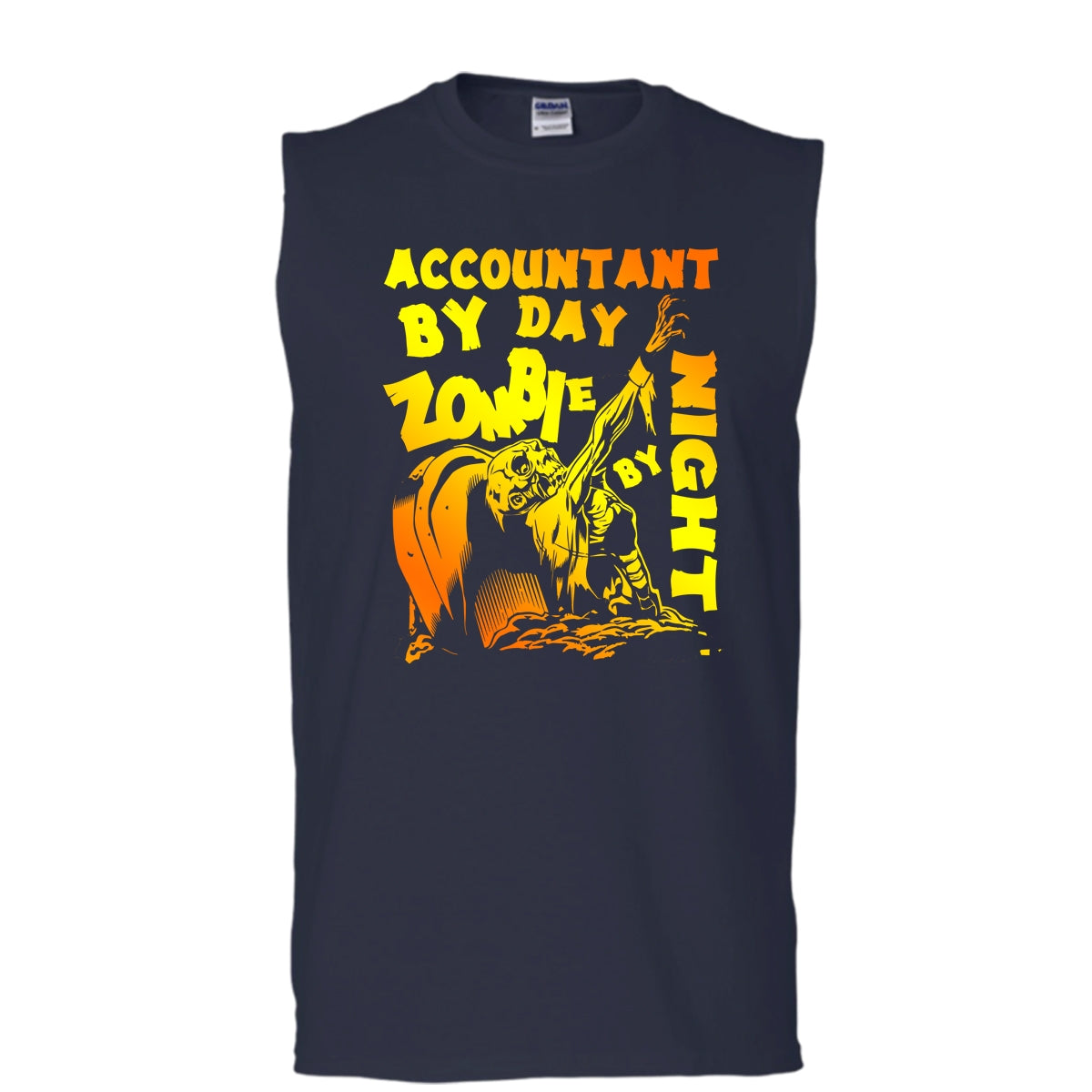 Accountant By Day T Shirt, Zombie By Night Tank Top (Men's Cotton Sleeveless)