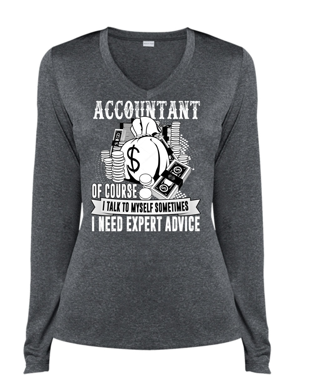 Accountant Of Course T Shirt, I Need Expert Advice T Shirt, Cool Shirt (Ladies LS Heather V-Neck)