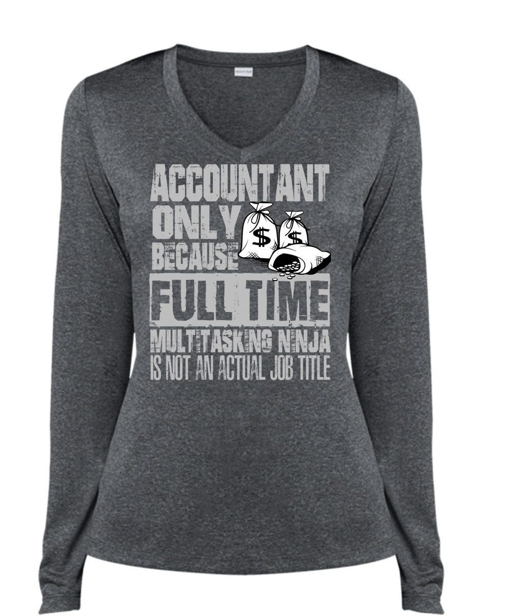 Accountant Only T Shirt, Full Time Multitasking T Shirt, Cool Shirt (Ladies LS Heather V-Neck)