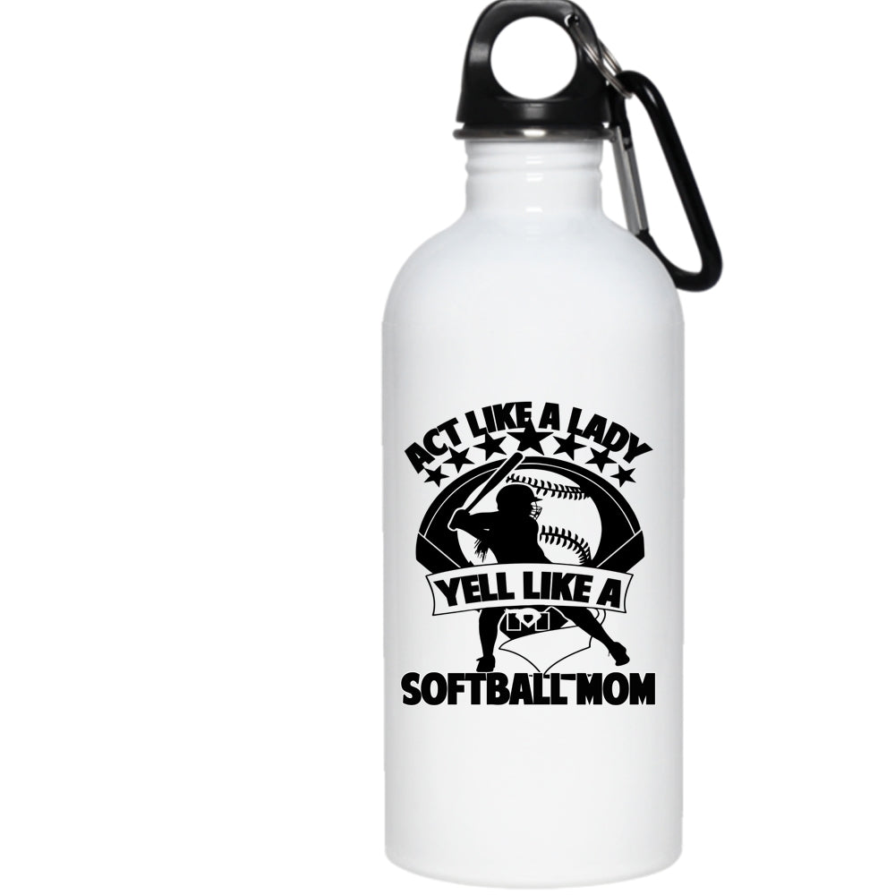 Act Like A Lady Yell Like A Softball Mom 20 oz Stainless Steel Bottle,Cool Lady Outdoor Sports Water Bottle