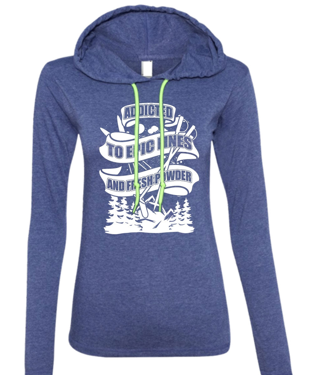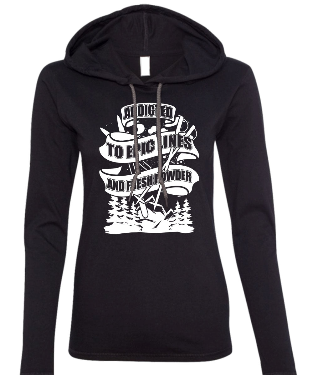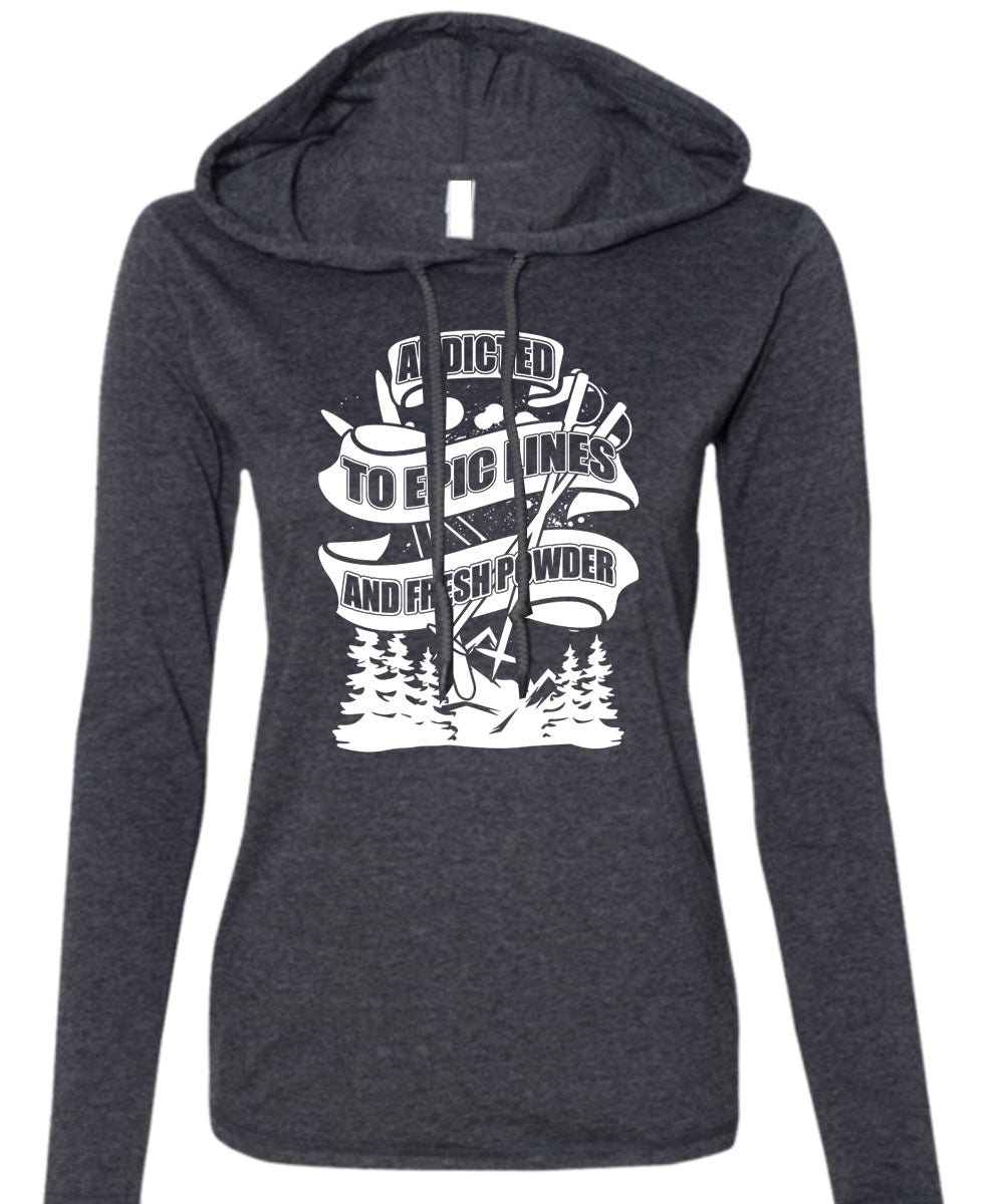 Addicted To Epic Lines And Fresh Powder T Shirt, Being A Hiker T Shirt (Anvil Ladies Ringspun Hooded)