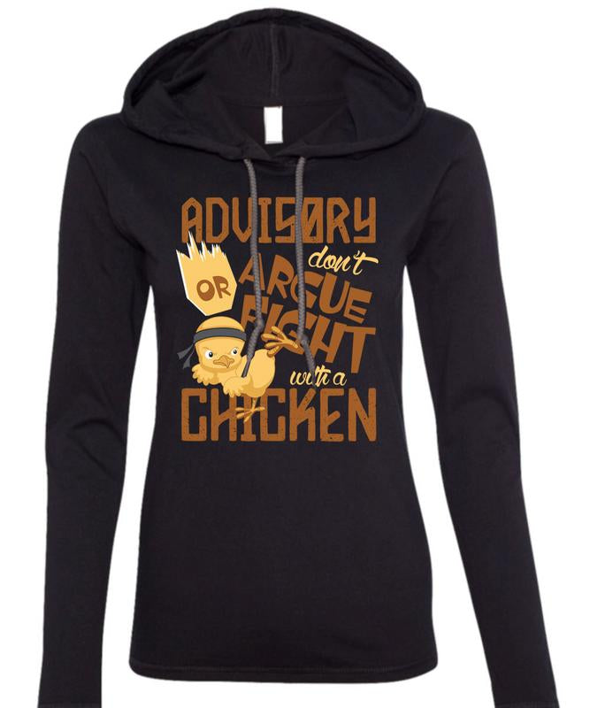 Advisory Don't Argue Fight With A Chicken T Shirt, My Favorite T Shirt (Anvil Ladies Ringspun Hooded)