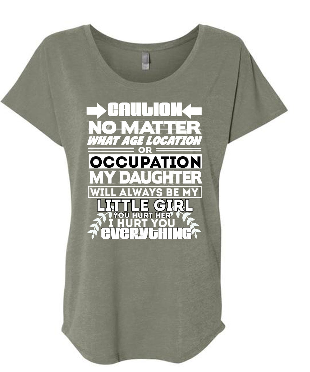 Age Location Or Occupation My Daughter T Shirt, I Hurt You T Shirt, Cool Shirt (Ladies' Triblend Dolman Sleeve)