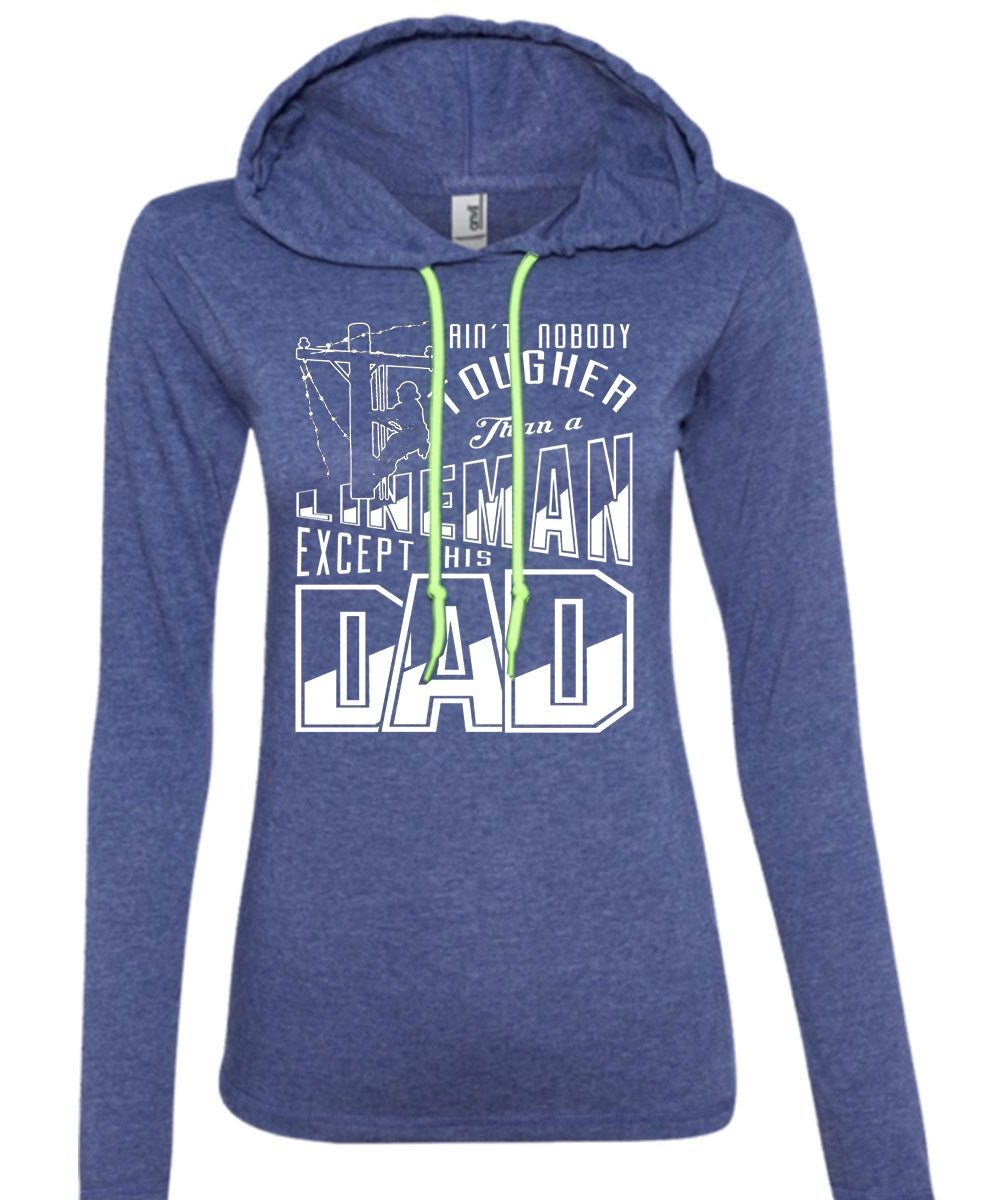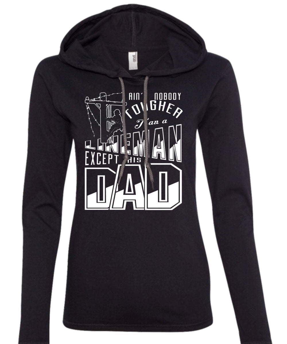 Ain't Nobody Tougher Than A Lineman Except His Dad T Shirt, Job T Shirt (Anvil Ladies Ringspun Hooded)