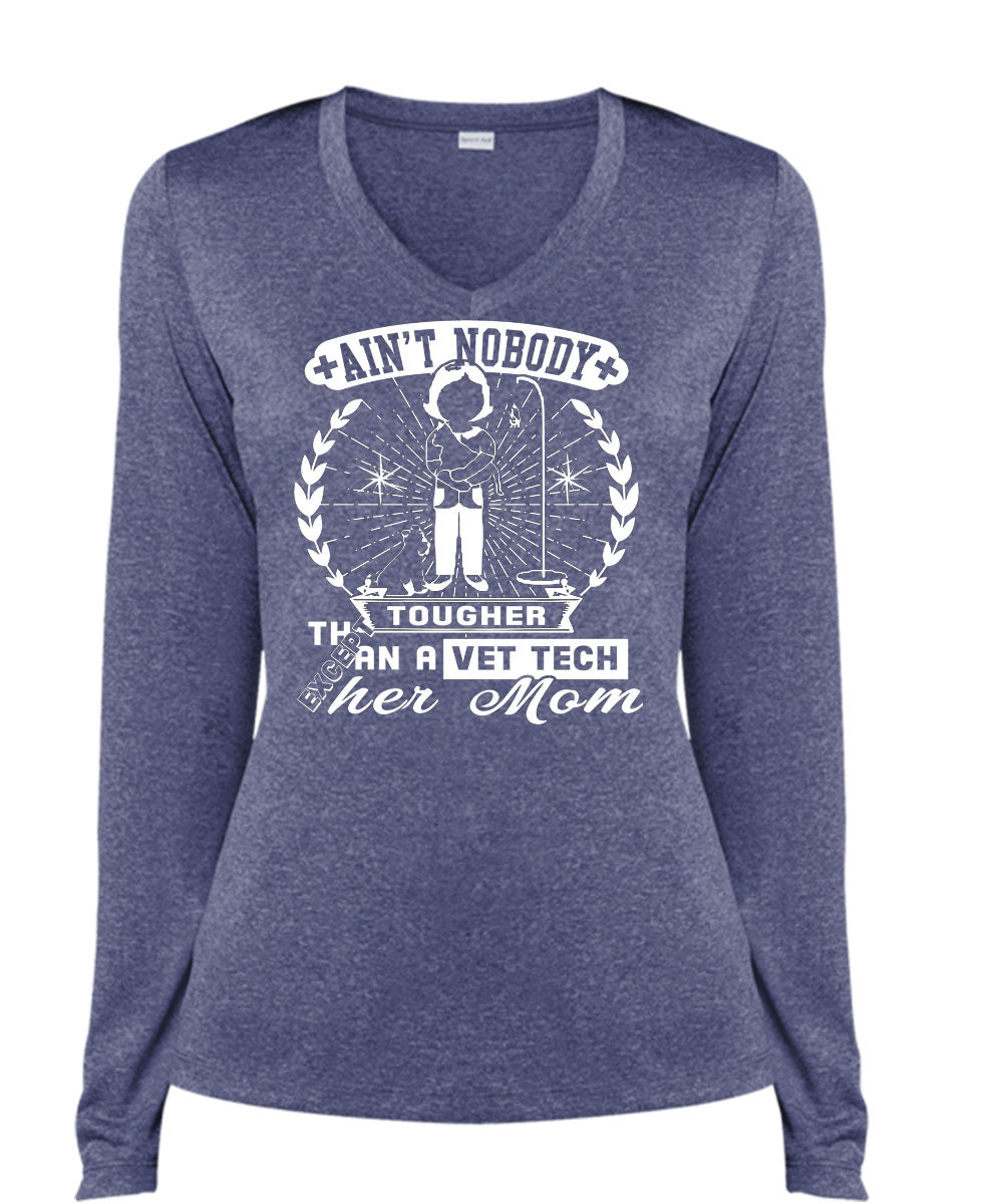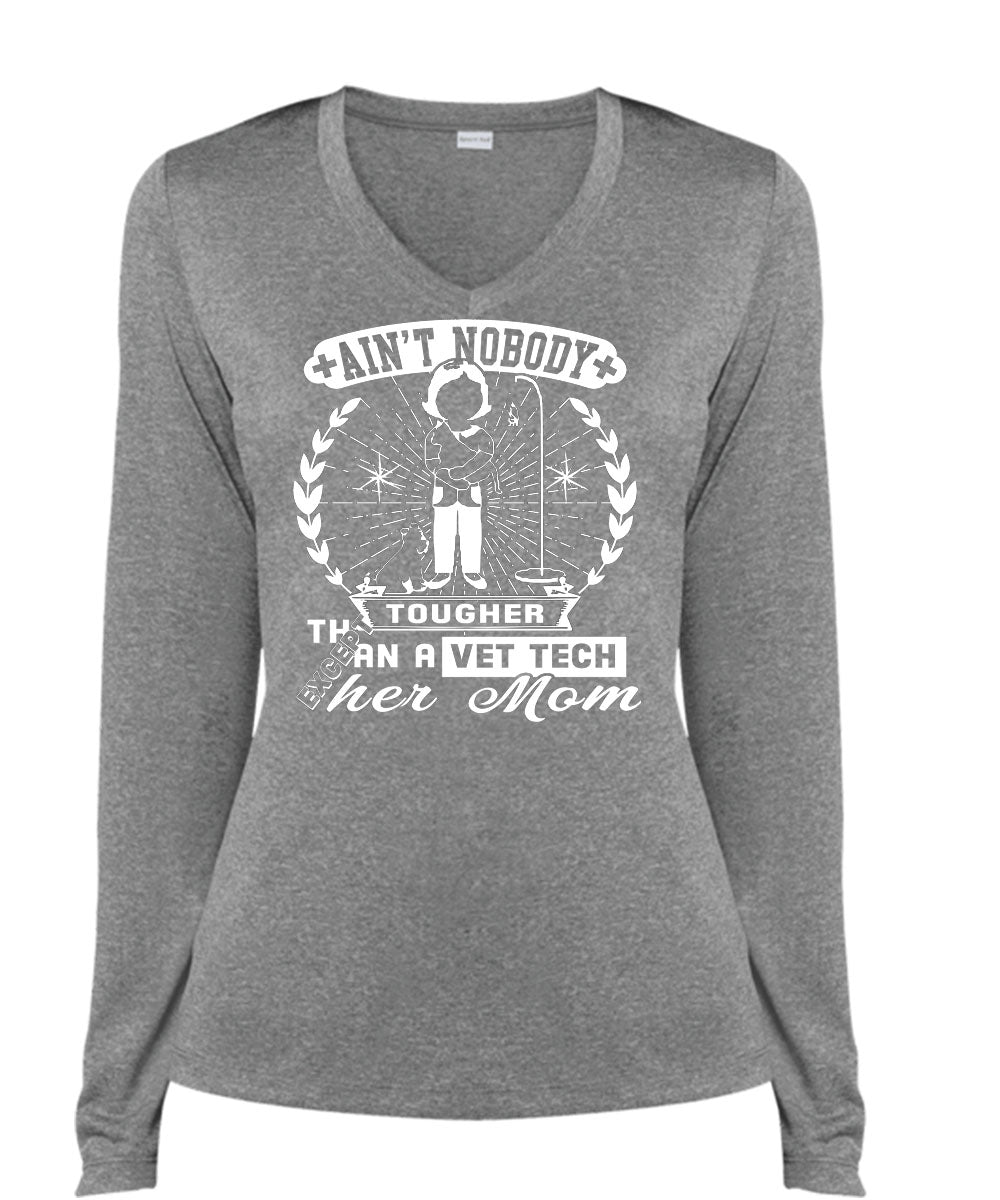 Ain't Nobody Tougher Than A Vet Tech T Shirt, Except Her Mom T Shirt, Cool Shirt (Ladies LS Heather V-Neck)