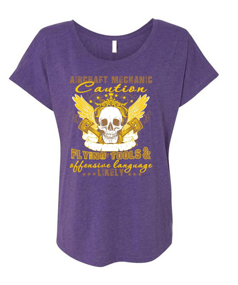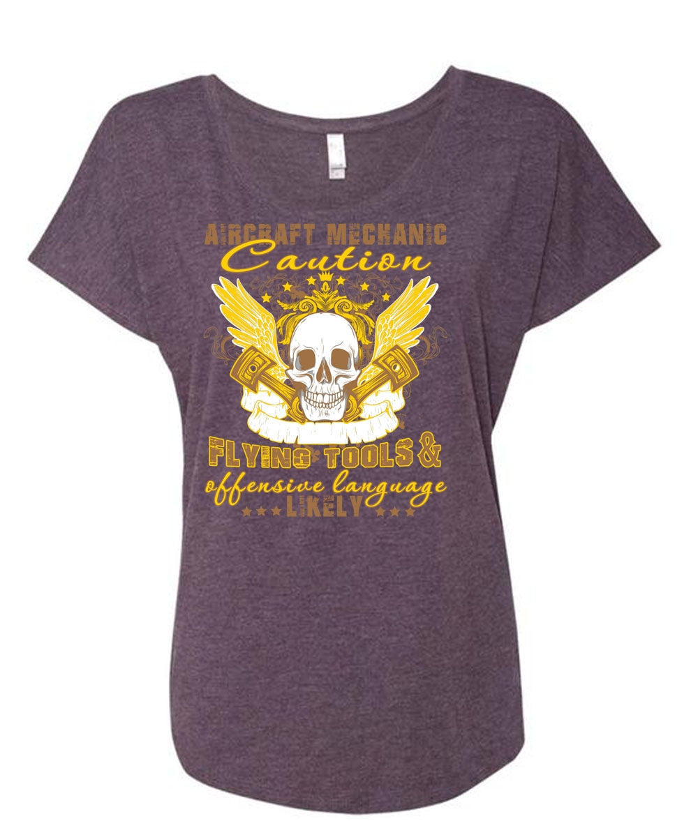 Aircraft Mechanic Caution Flying Tools T Shirt, I Love Mechanic T Shirt, Cool Shirt (Ladies' Triblend Dolman Sleeve)