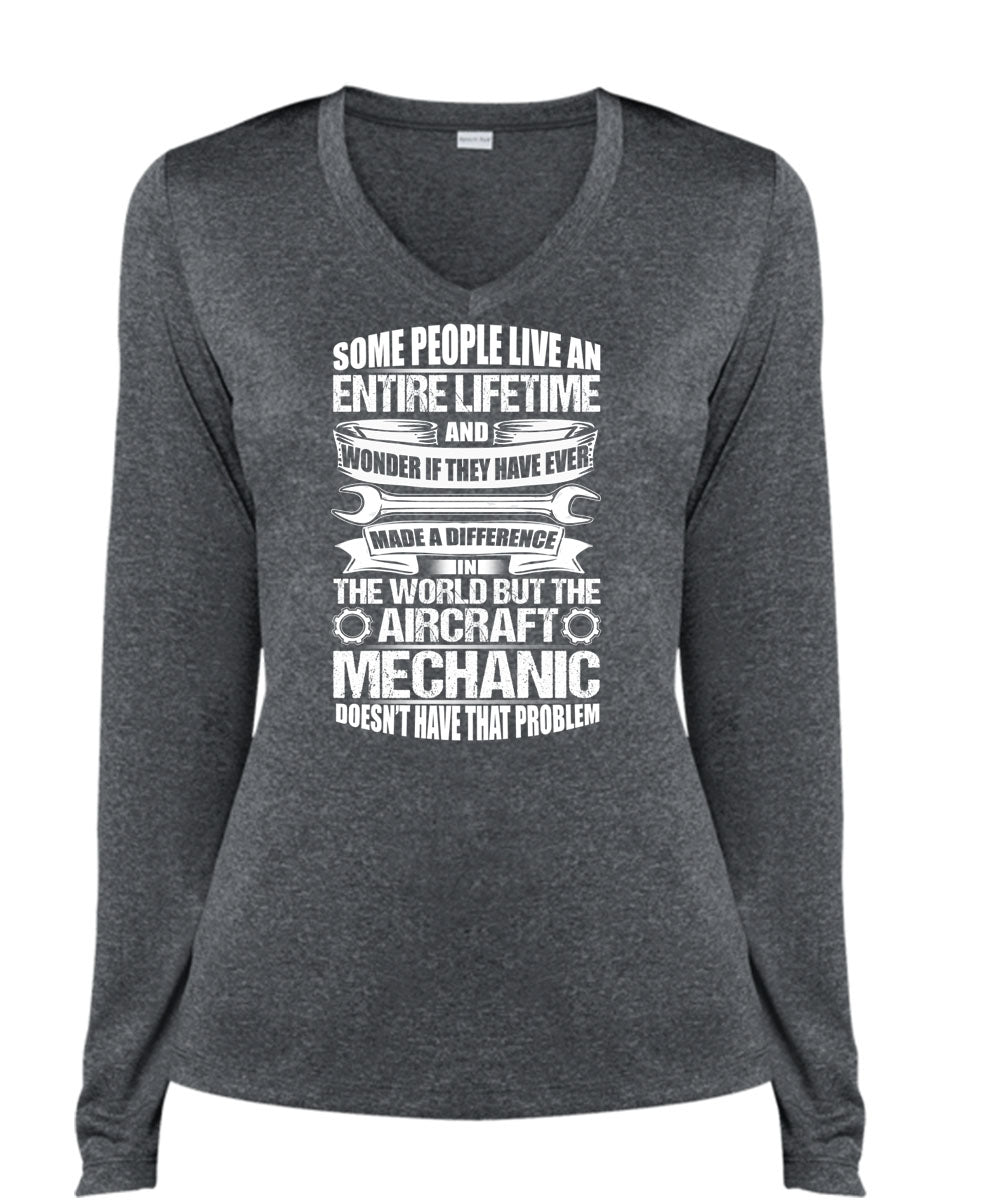 Aircraft Mechanic Doesn't Have That Problem T Shirt, Made A Difference T Shirt, Cool Shirt (Ladies LS Heather V-Neck)