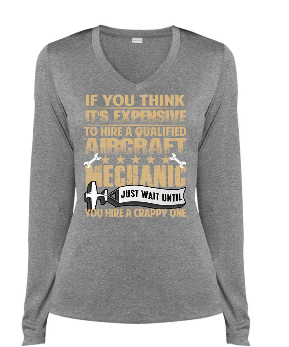Aircraft Mechanic Just Wait T Shirt, Being A Mechanic T Shirt, Cool Shirt (Ladies LS Heather V-Neck)