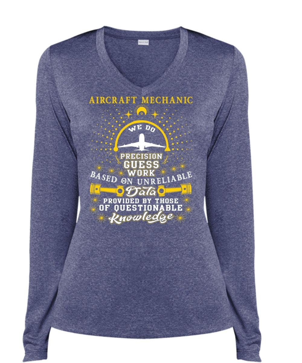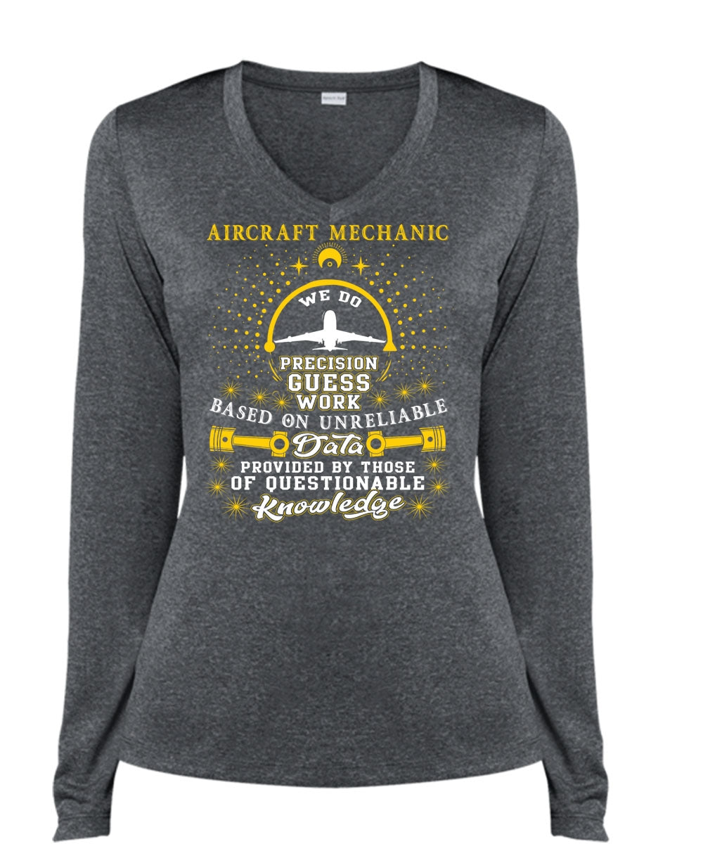 Aircraft Mechanic T Shirt, I Love Mechanic T Shirt, Cool Shirt (Ladies LS Heather V-Neck)