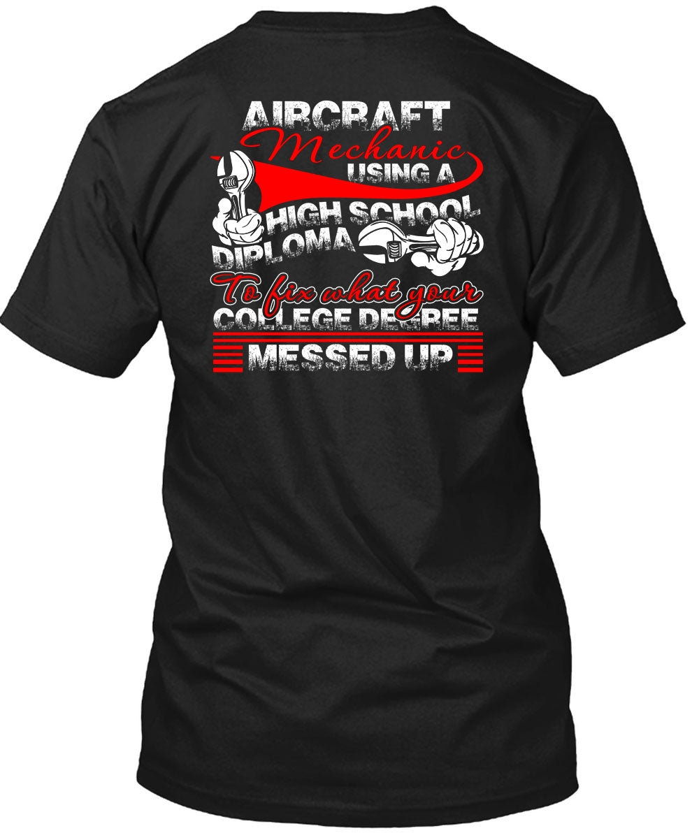 Aircraft Mechanic Using A High School T Shirt, College Degree T Shirt