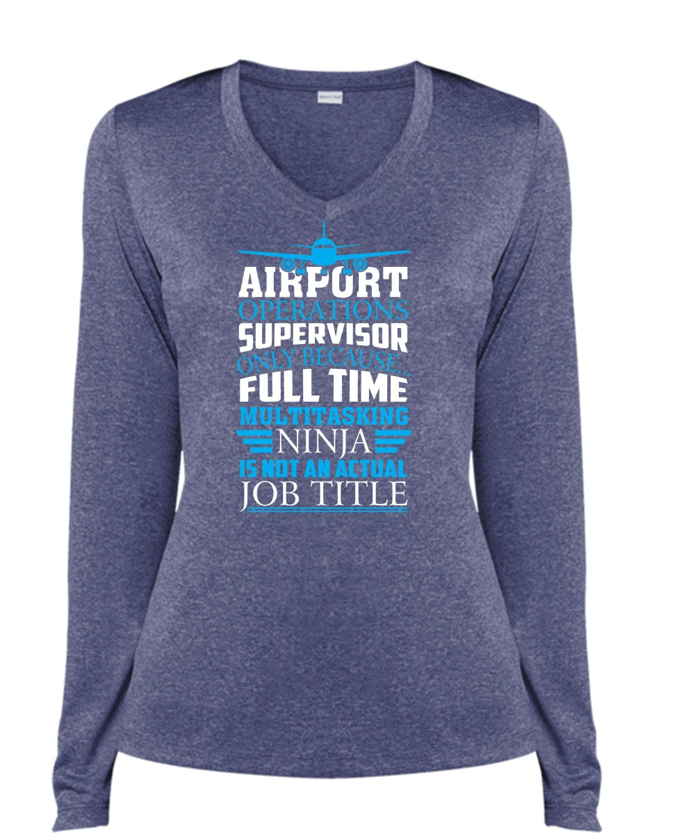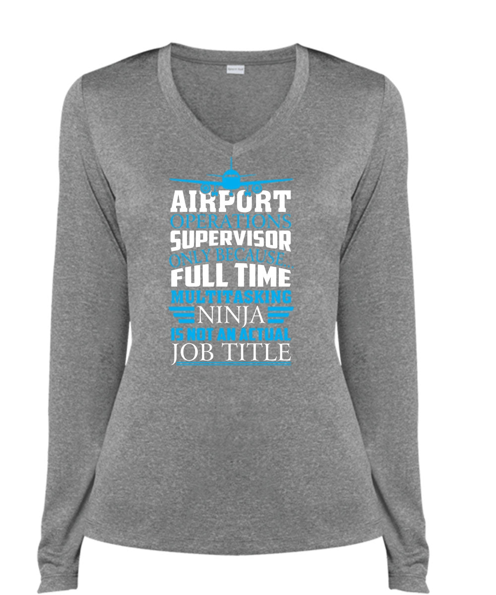 Airport Operations Supervisor Only Because Full Time T Shirt, Job T Shirt (Ladies LS Heather V-Neck)