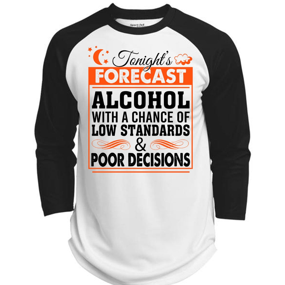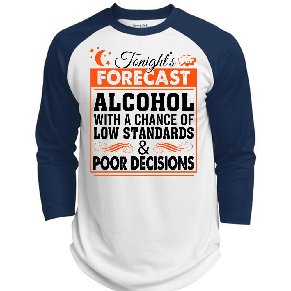 Alcohol With Chance Of Low Standards And Poor Decisions T Shirt, Favorite T Shirt (Polyester Game Baseball Jersey)