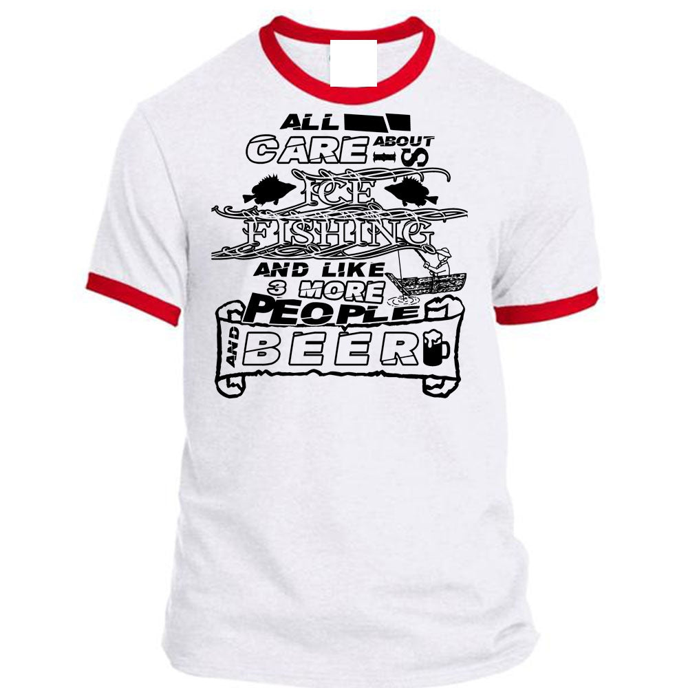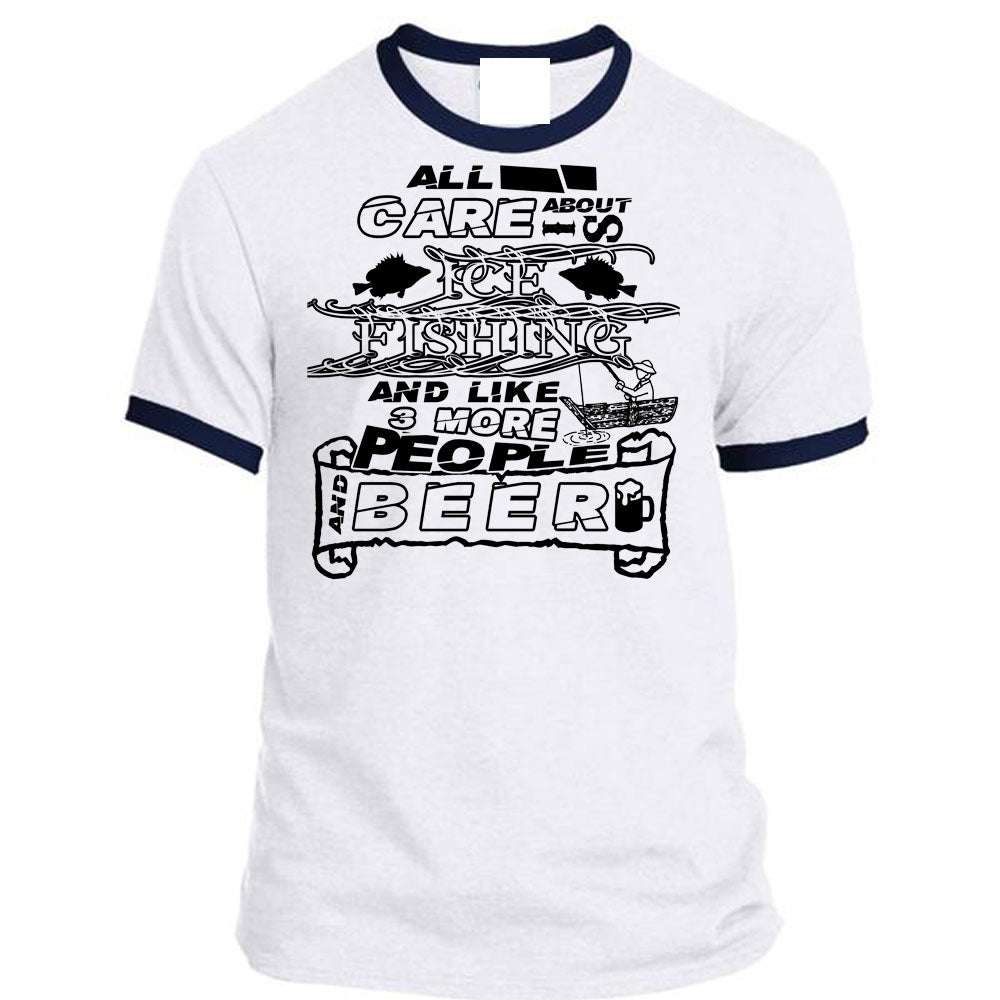 All Care Is About Ice Fishing And Like 3 More People And Beer T Shirt, Favorite T Shirt