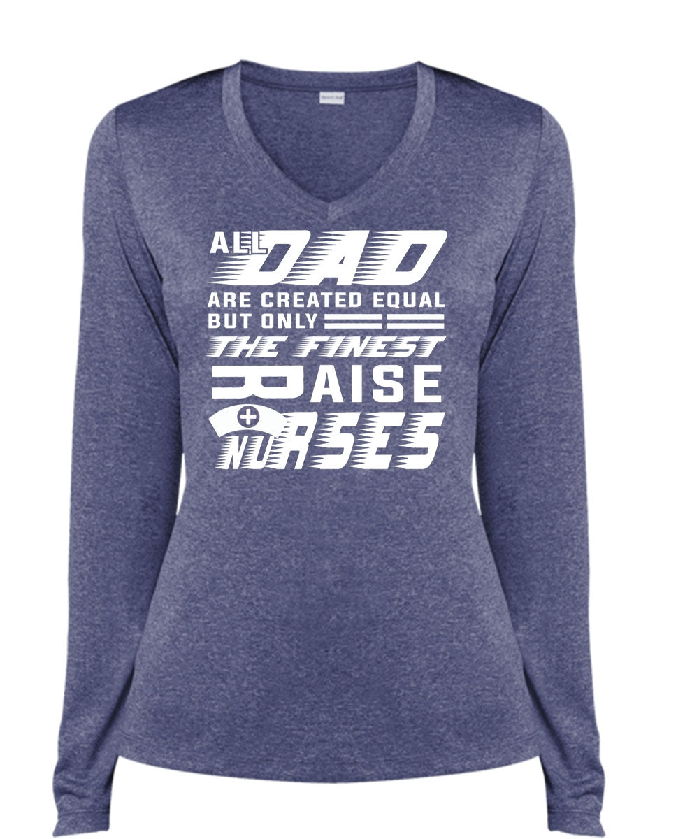 All Dad Are Created Equal But Only The Finest Raise Nurses T Shirt, Job T Shirt (Ladies LS Heather V-Neck)