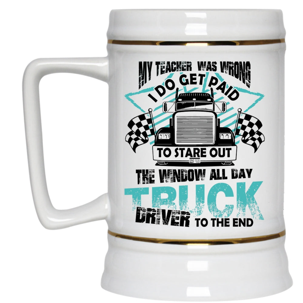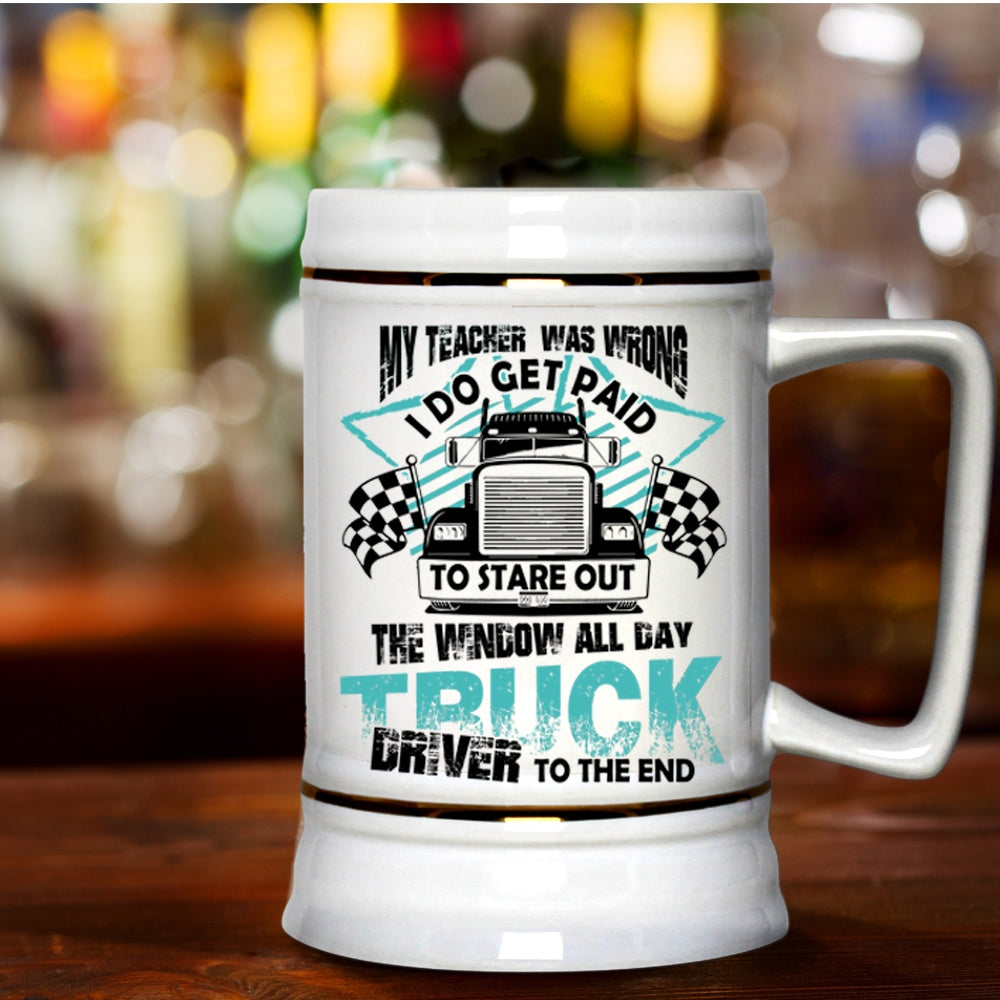 All day Truck Driver To The End Beer Stein 22oz, My Teacher Was Wrong Beer Mug