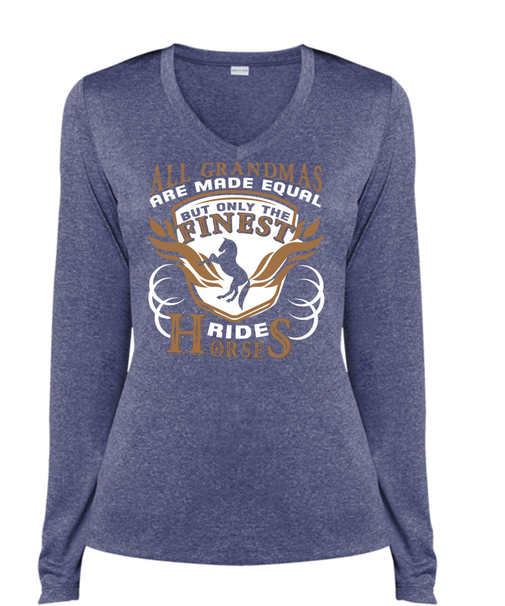 All Grandmas Are Made Equal T Shirt, Only The Finest Ride Horses T Shirt, Cool Shirt (Ladies LS Heather V-Neck)