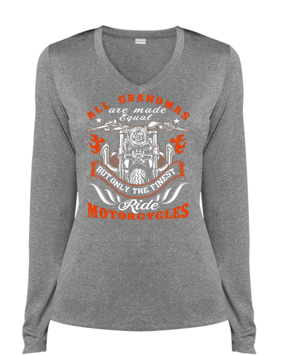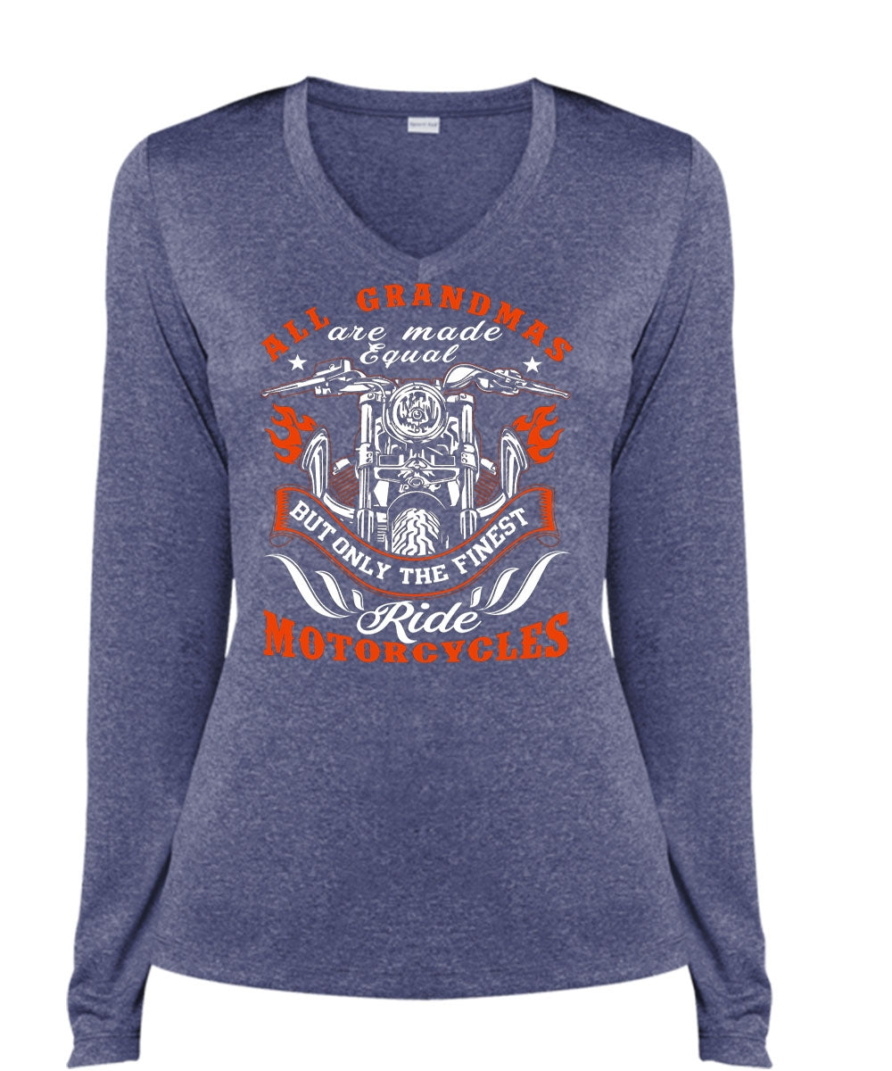All Grandmas Are Made Equal T Shirt, Only The Finest Ride Motorcycles T Shirt, Cool Shirt (Ladies LS Heather V-Neck)