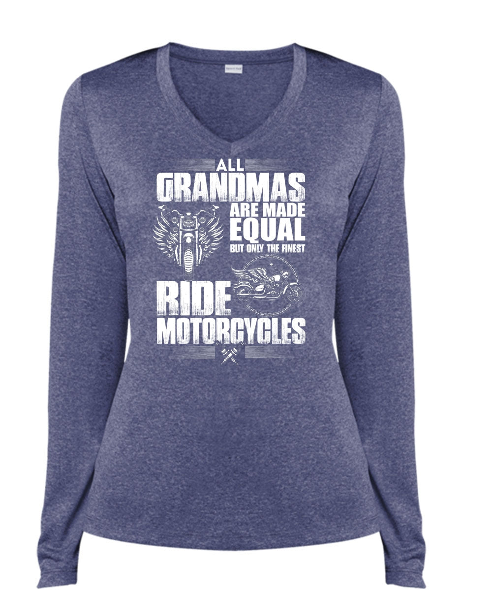 All Grandmas Are Made Equal T Shirt, Ride Motorcycles T Shirt, Cool Shirt (Ladies LS Heather V-Neck)