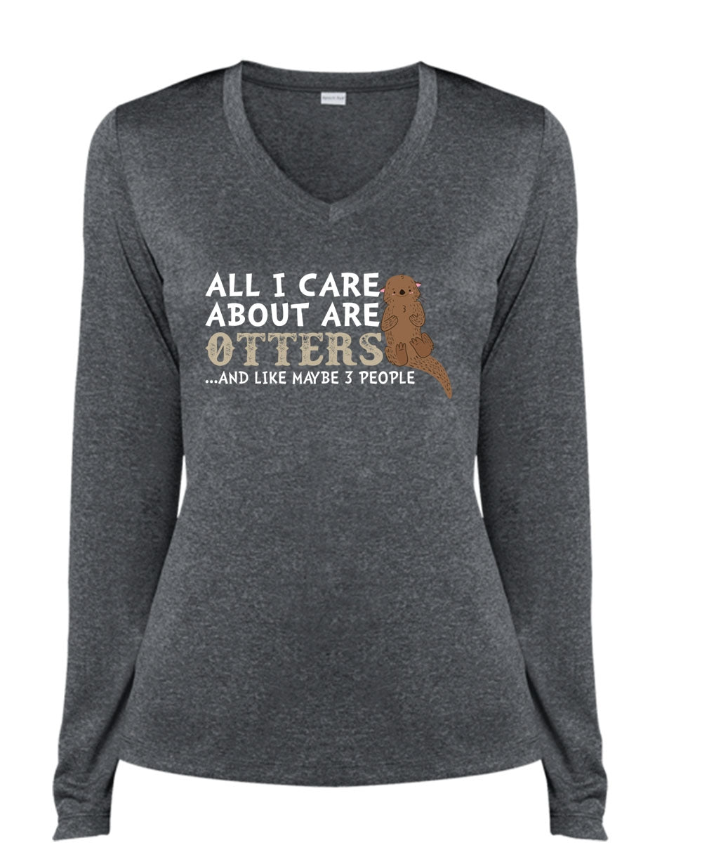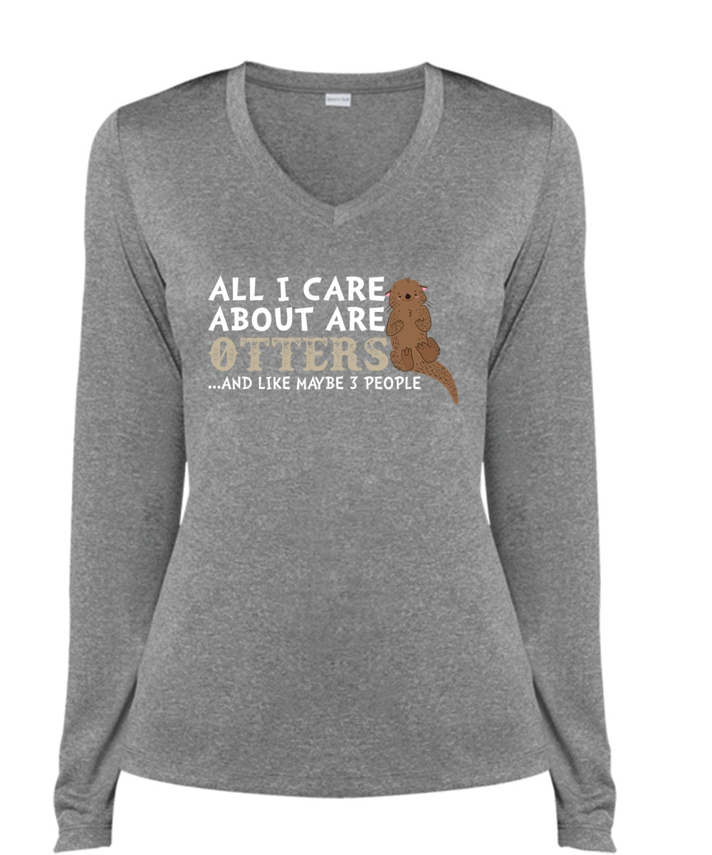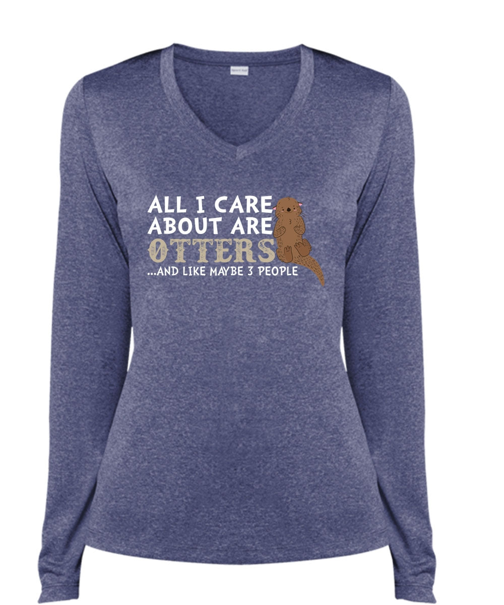 All I Care About Are Otters And Like Maybe 3 People T Shirt, Loving T Shirt (Ladies LS Heather V-Neck)