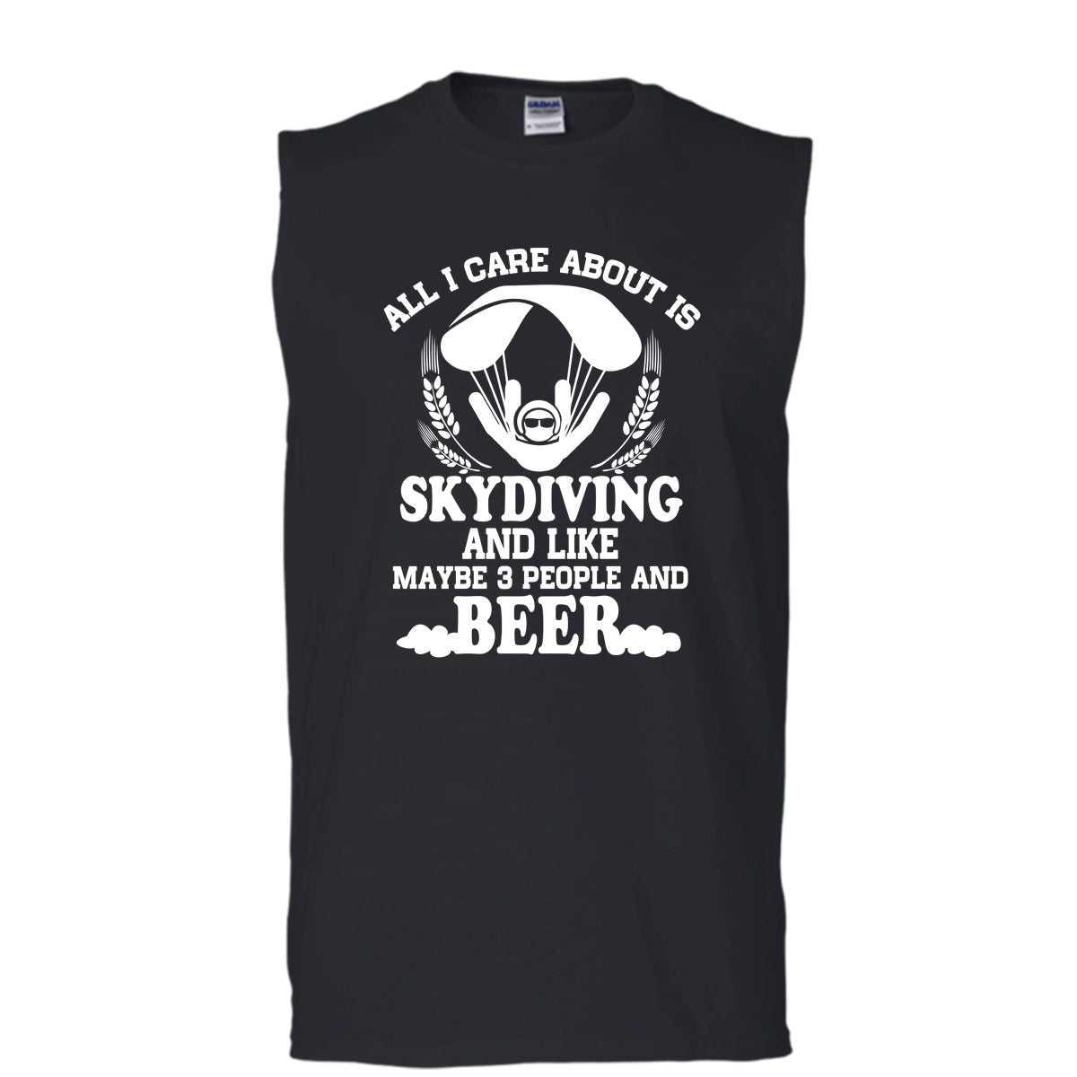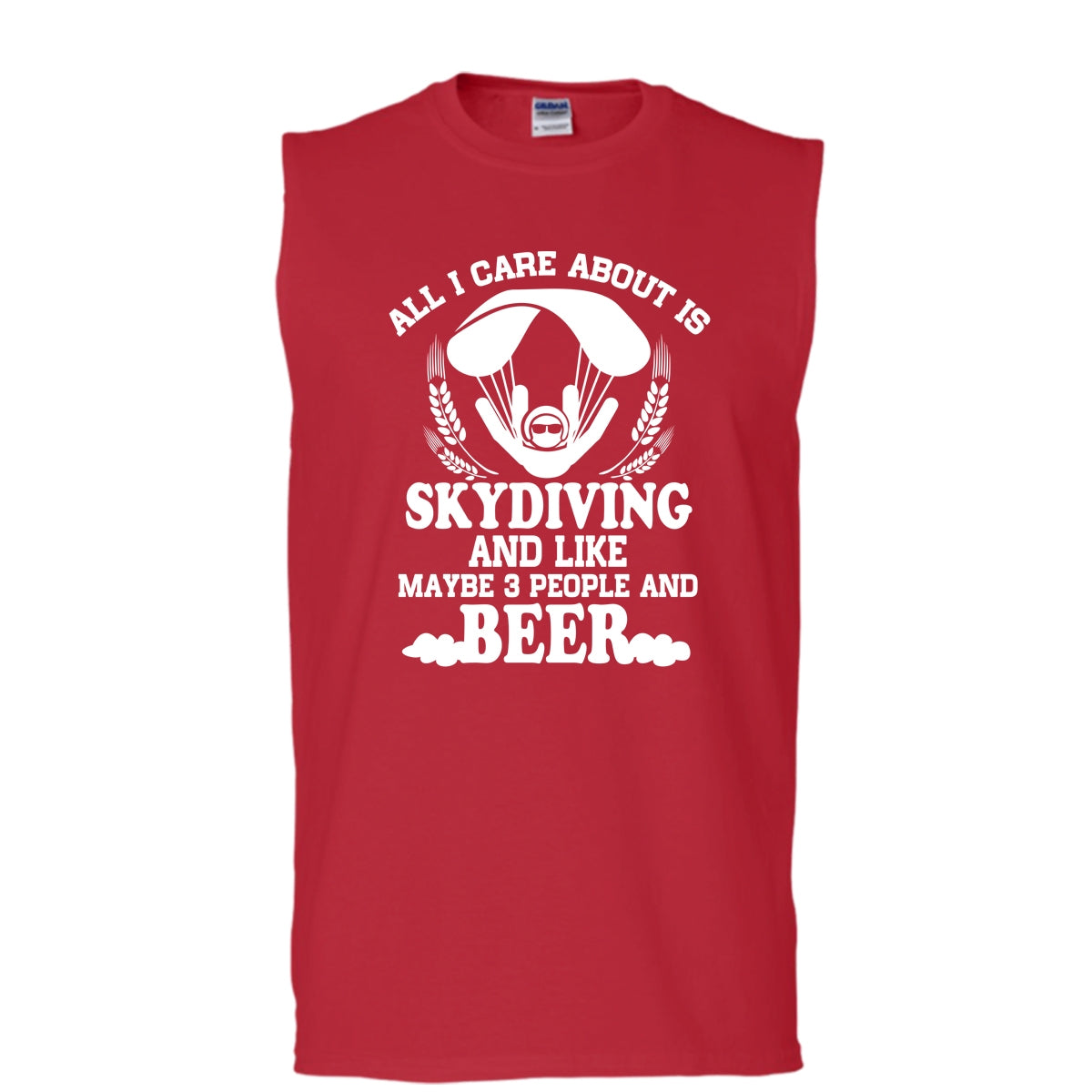 All I Care About Is Skydiving Shirt, And Like Maybe 3 People And Beer Shirt (Men's Cotton Sleeveless)