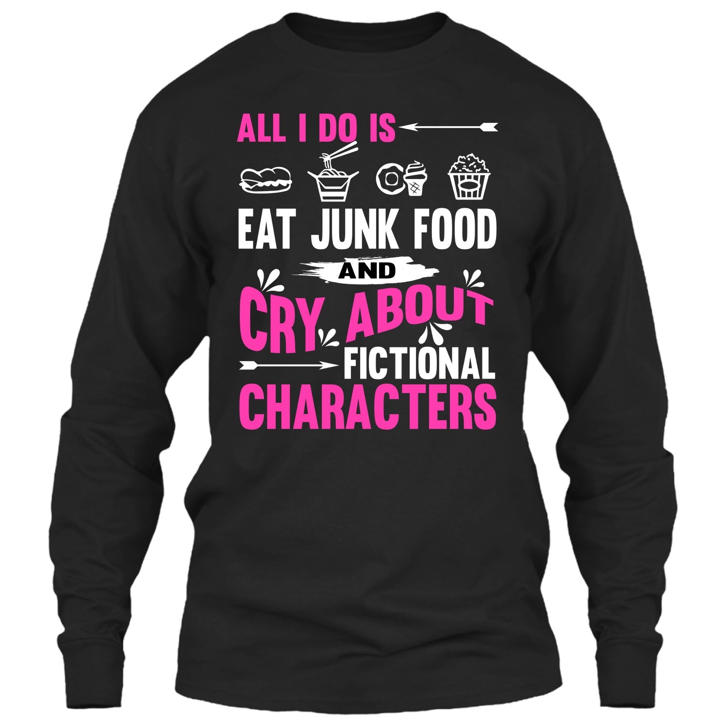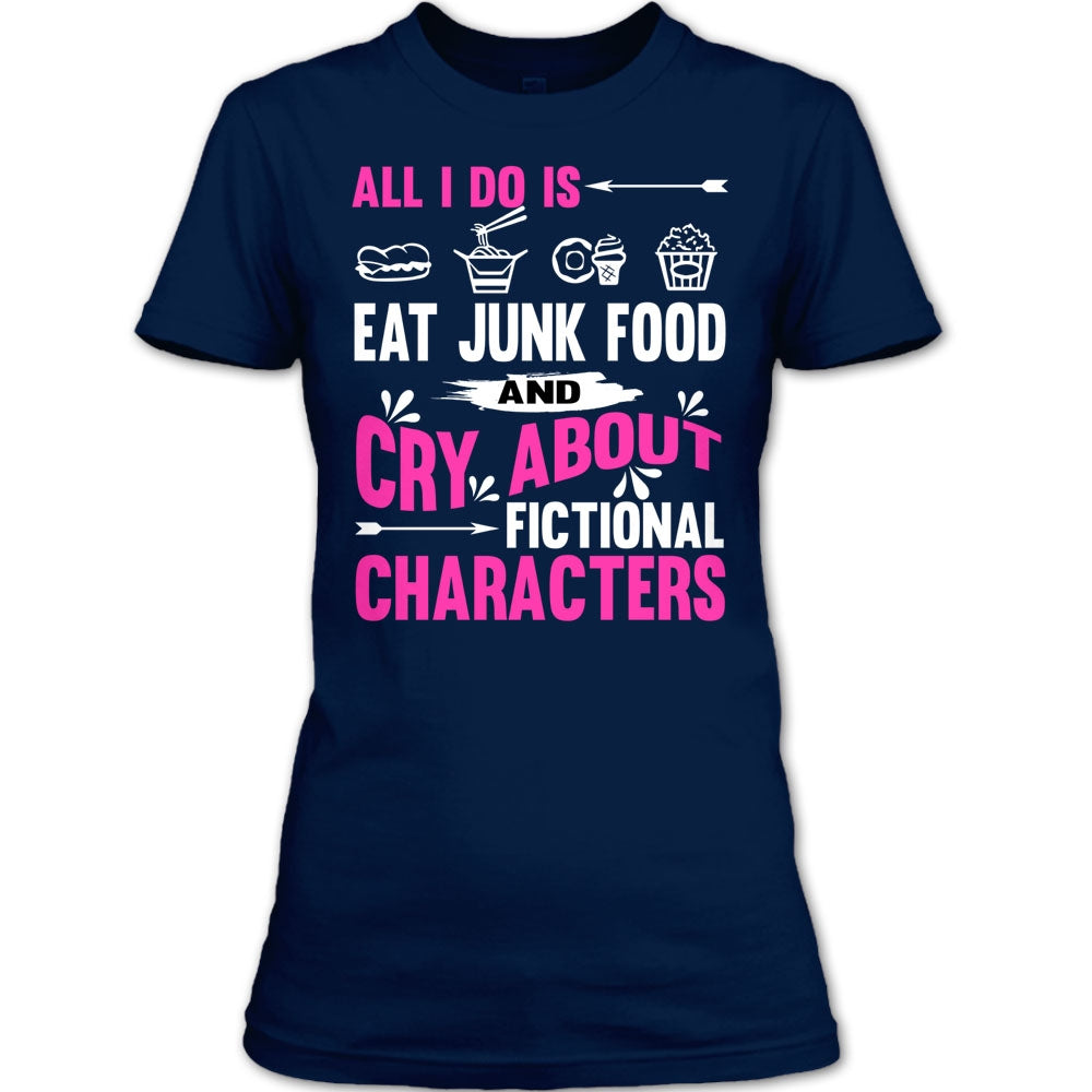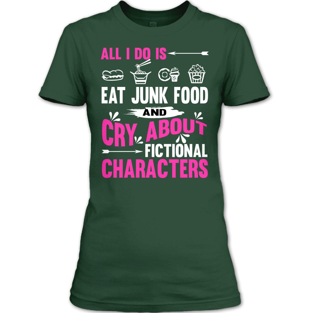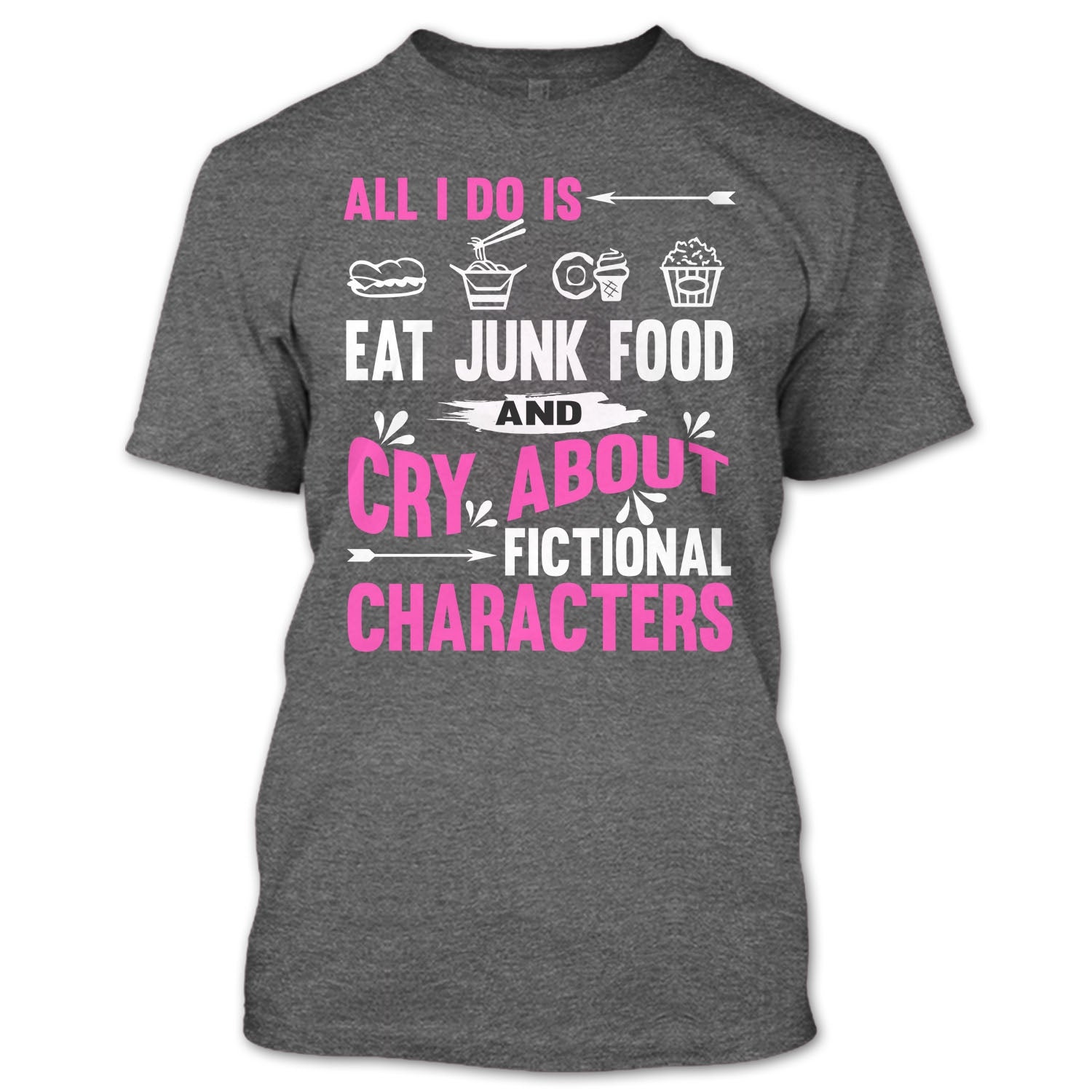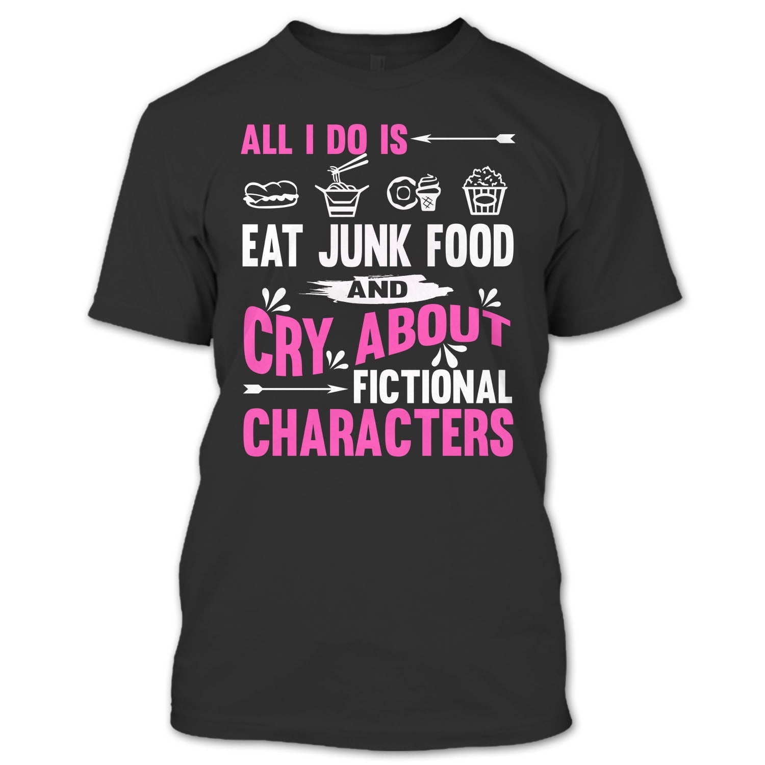 All I Do Is Eat Junk Food T Shirt, Cry About Fictional Characters T Shirt