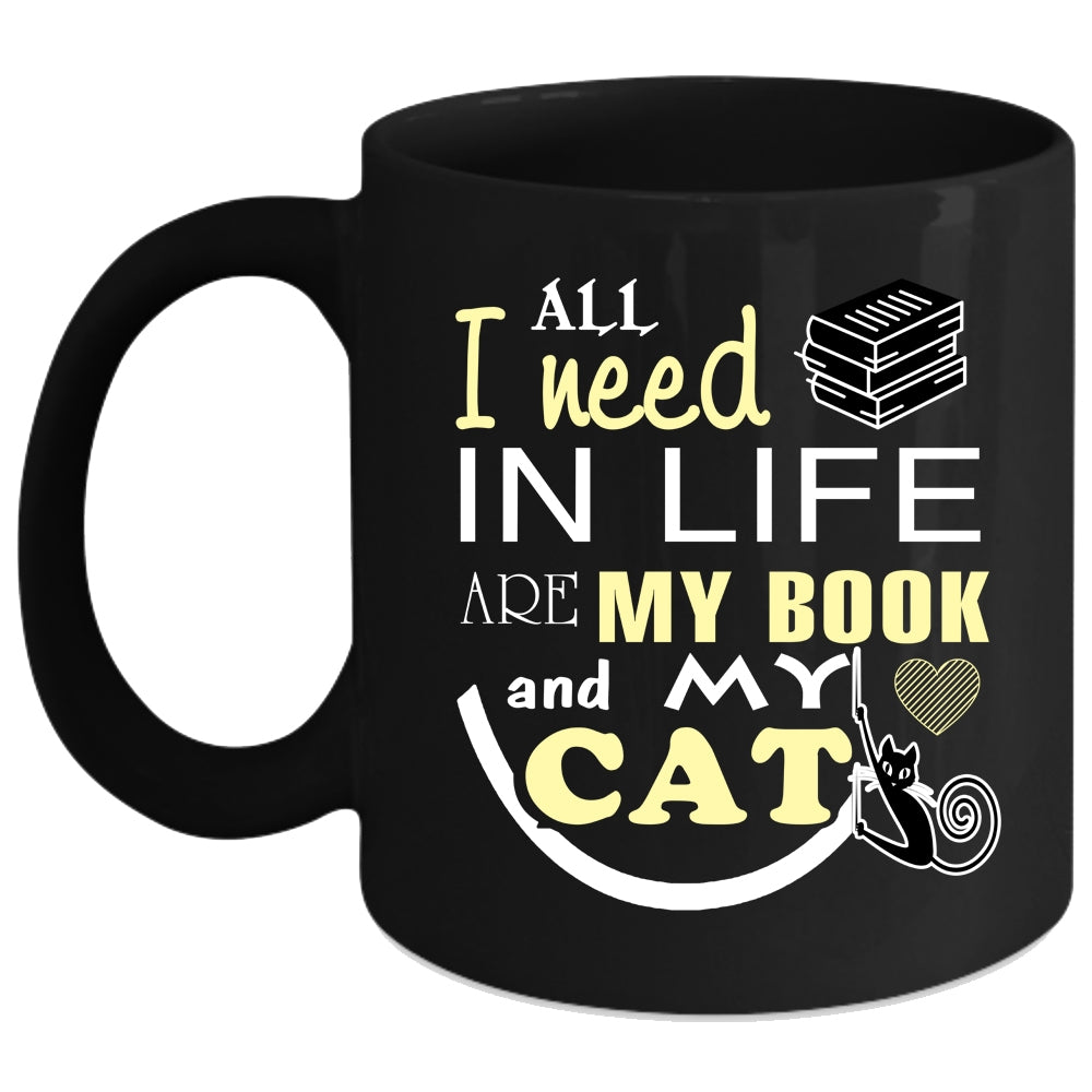 All I Need In Life Are My Book And My Cat Coffee Mug, Cool Booker Coffee Cup