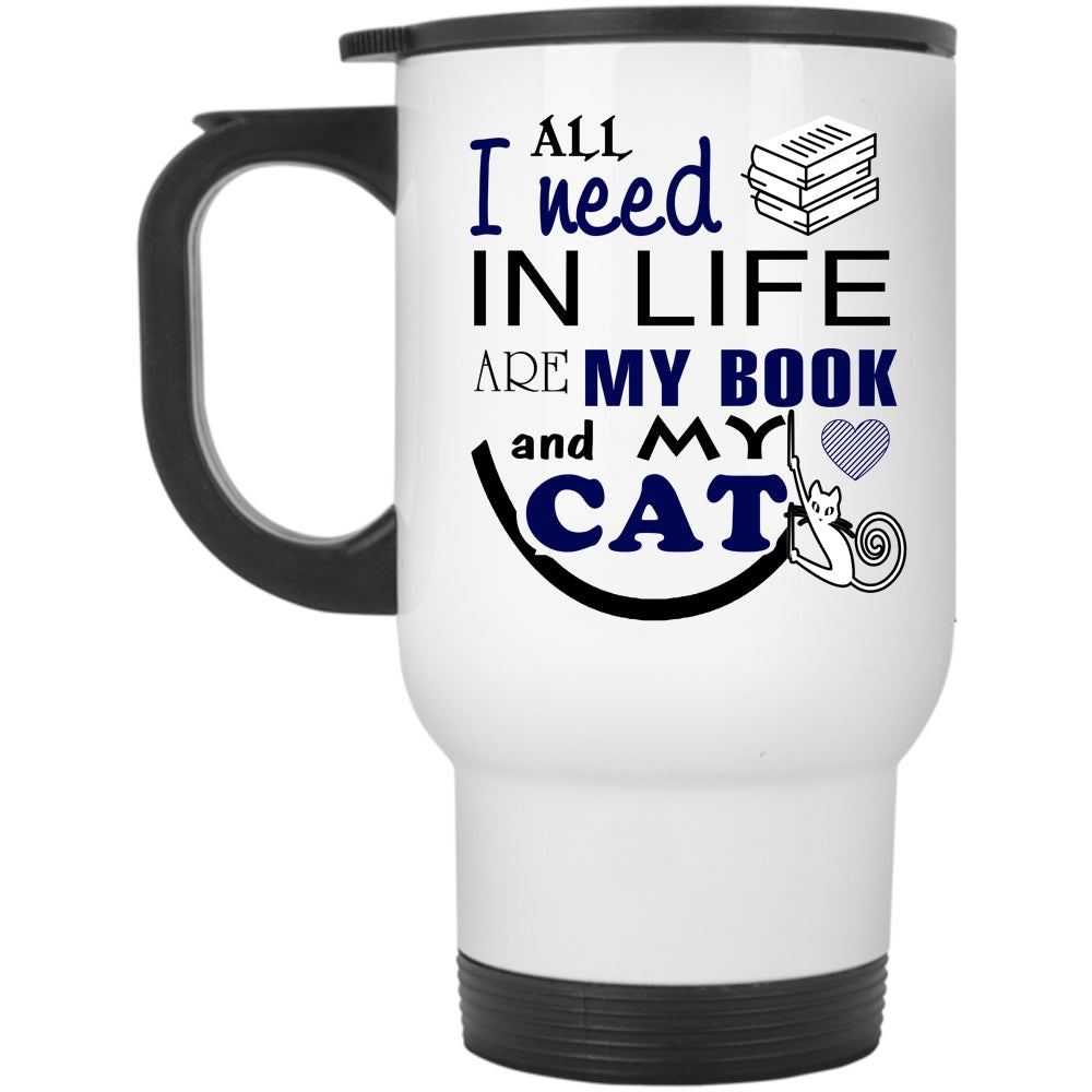 All I Need In Life Are My Book And My Cat Cup, Book Mug (Travel Mug)