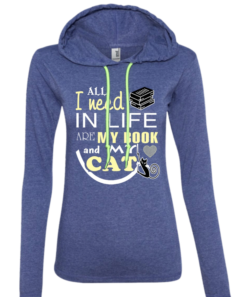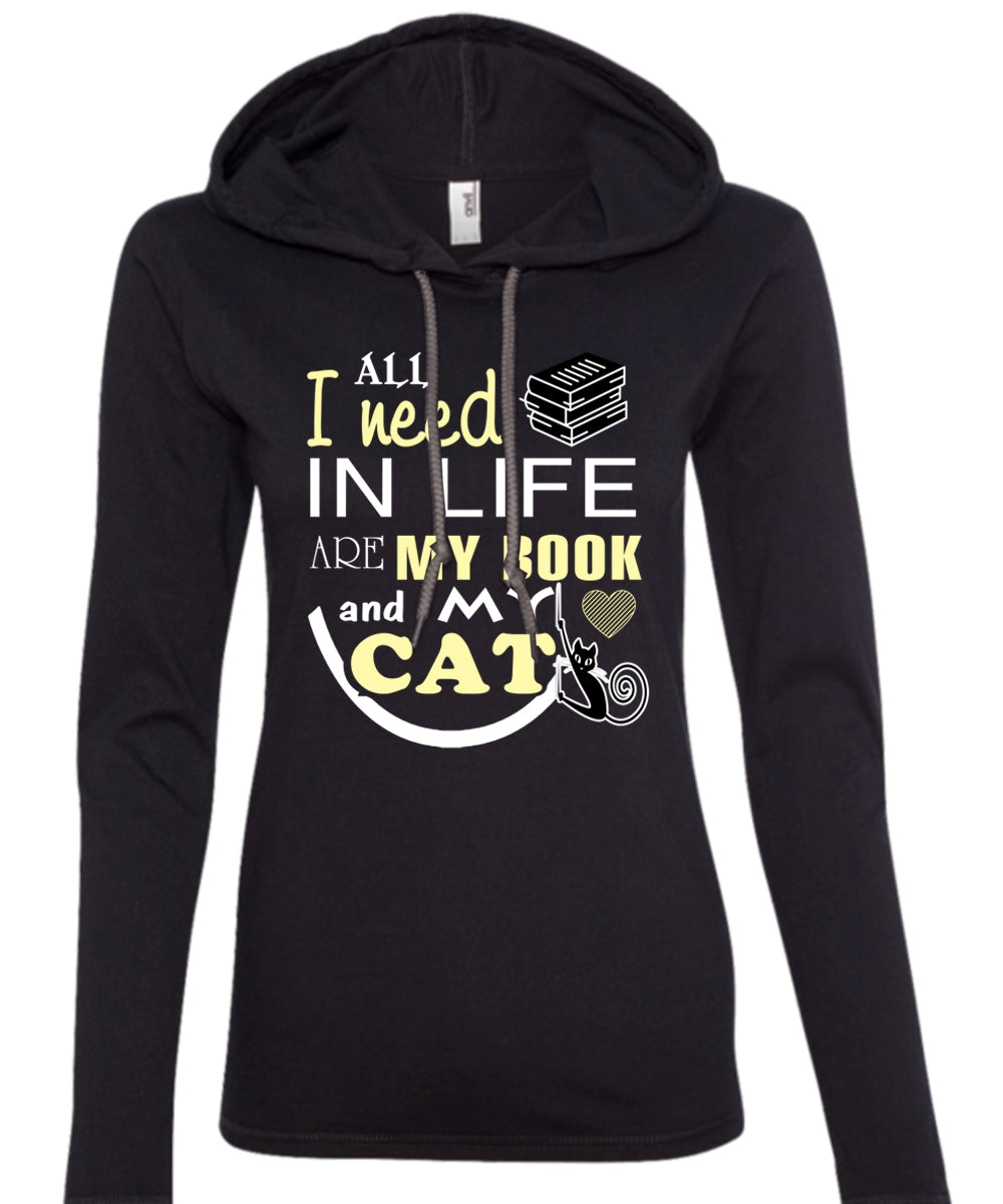 All I Need In Life Are My Book And My Cat T Shirt, My Pets T Shirt, My Favorite T Shirt (Anvil Ladies Ringspun Hooded)