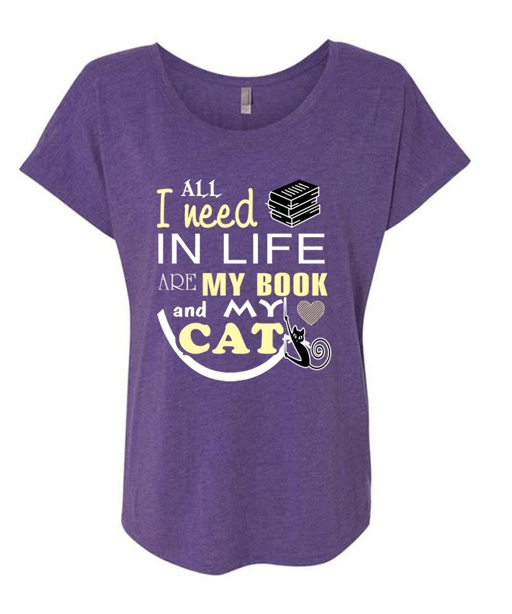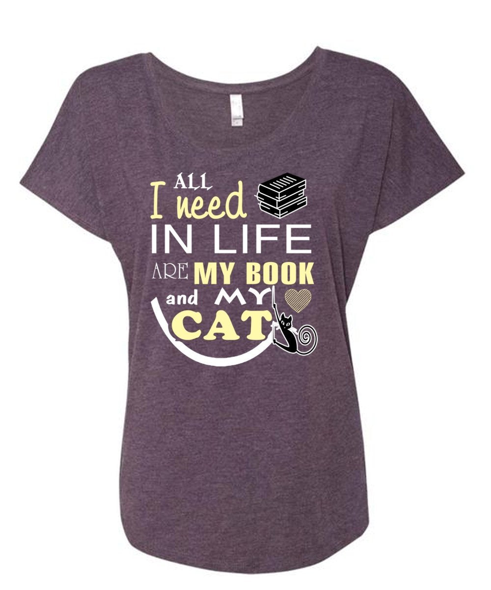All I Need In Life Are My Book And My Cat T Shirt, My Pets T Shirt, My Favorite T Shirt (Ladies' Triblend Dolman Sleeve)