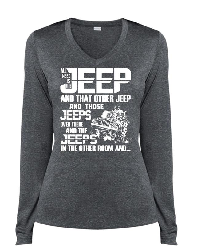 All I Need Is This Jeep T Shirt, Jeeps In The Other Room T Shirt, Cool Shirt (Ladies LS Heather V-Neck)
