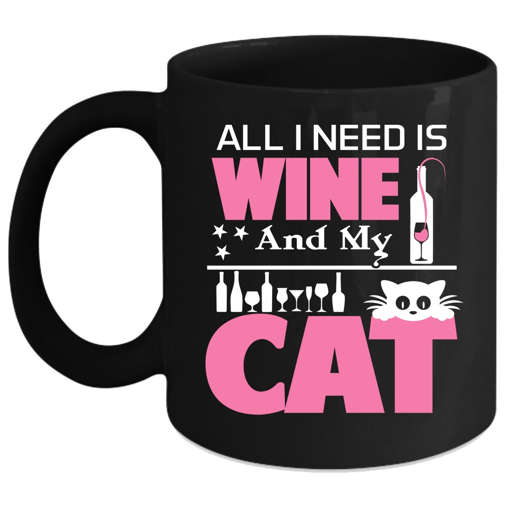 All I Need Is Wine And My Cat Mug, Funny Cup