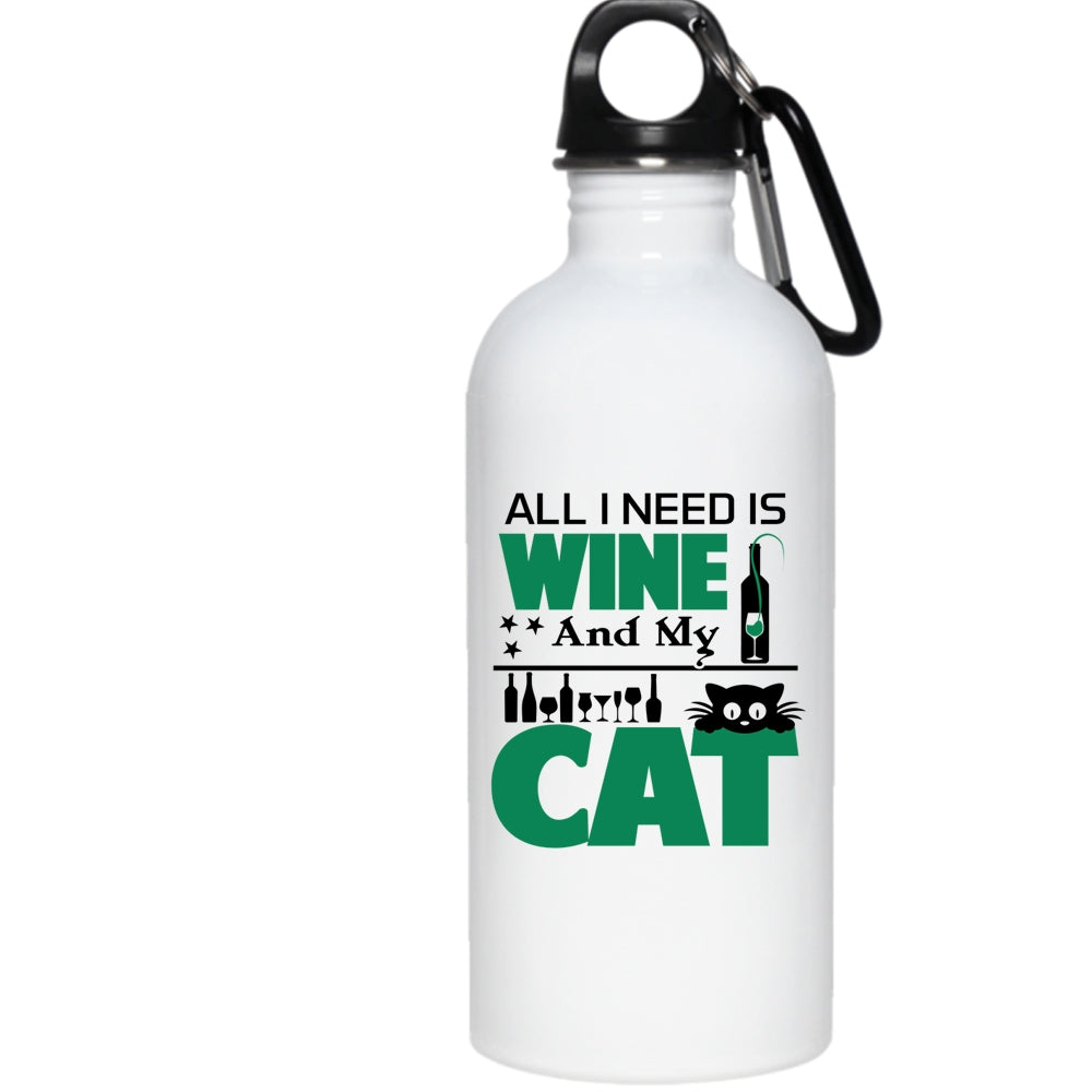 All I Need Is Wine And My Cat Mug, Funny Wine Cup (Stainless Steel Water Bottle)