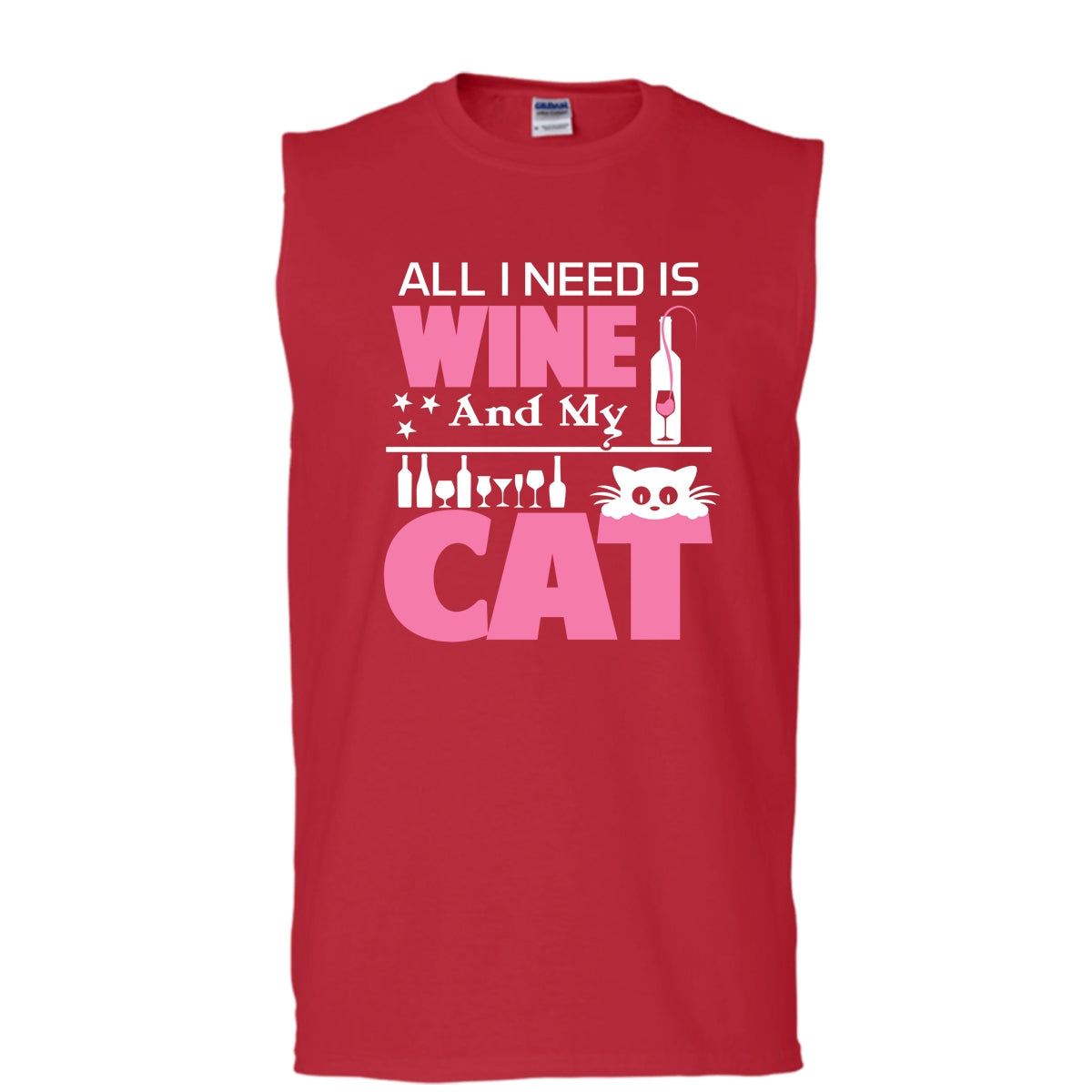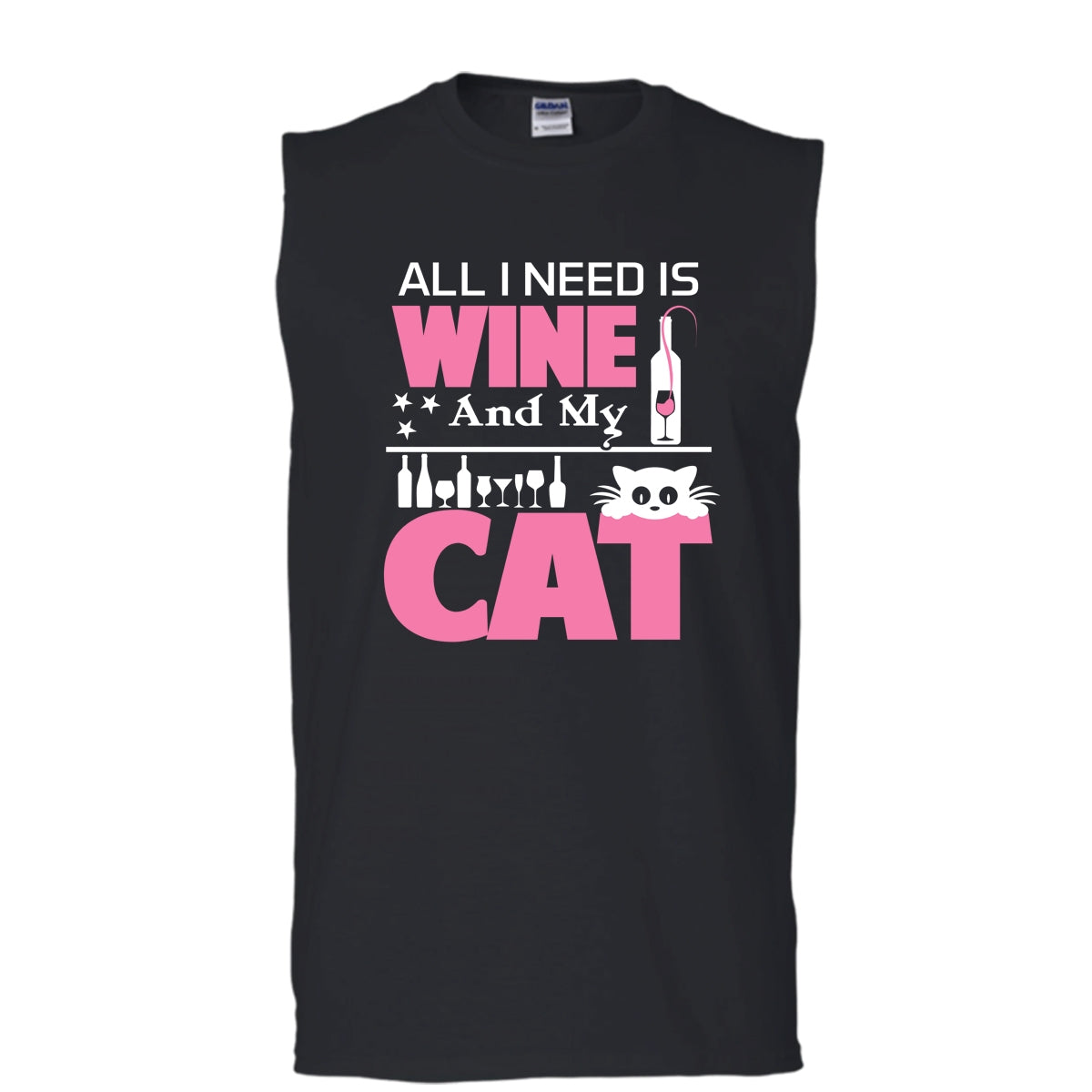 All I Need Is Wine And My Cat Shirt, Cool Cat Shirt (Men's Cotton Sleeveless)