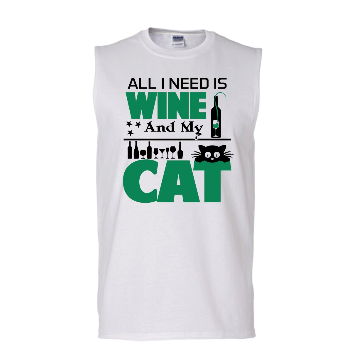 All I Need Is Wine And My Cat Shirt, Cute Cat Shirt (Men's Cotton Sleeveless)