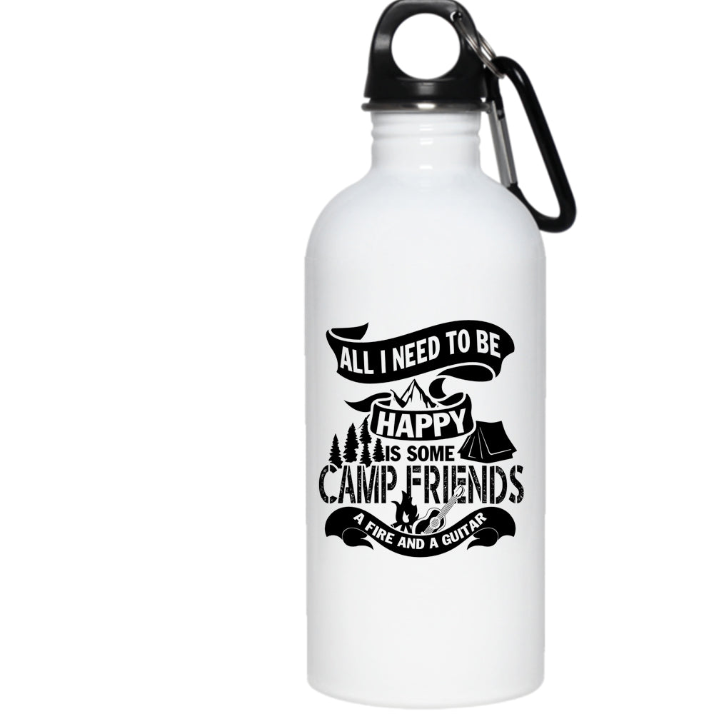 All I Need To Be Happy 20 oz Stainless Steel Bottle,Some Camp Friends A Fire And A Guitar Outdoor Sports Water Bottle