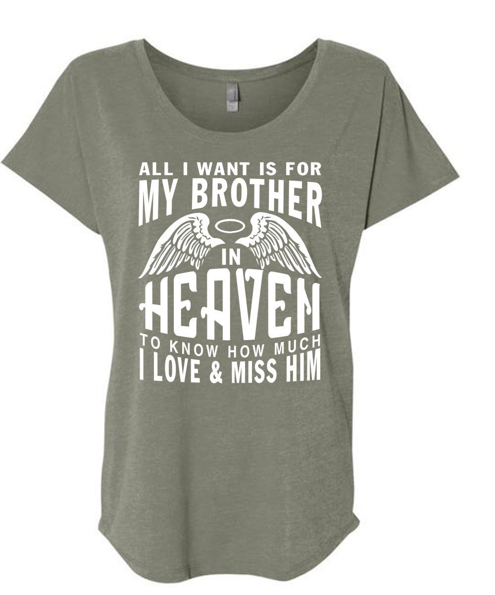 All I Want Is For My Brother In Heaven T Shirt, I Love And Miss Him T Shirt, Cool Shirt (Ladies' Triblend Dolman Sleeve)
